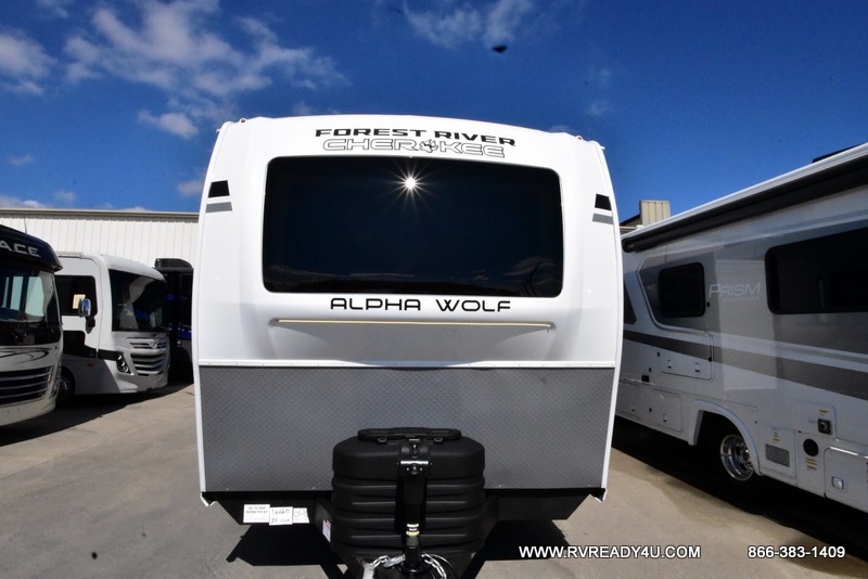 With any Cherokee Alpha Wolf travel trailer by Forest River, you'll enjoy outstanding amenities, quality construction, and an affordable price. Each model features a "ToughBend" rigid skirt metal design, 5/8" tongue and groove plywood floor decking, and a "SuperTruss" roof structure built for countless camping memories. There is a pet friendly "clean sweep" floor design with no heat vents indoors, along with a super lumen lighting system, a 15,000 BTU quick cool central air conditioning, and many more comforts. There are many convenient exterior features such as, Leash Latch pet safety technology, an outside shower with hot and cold water, and exterior steps with oversized landing and quick release. The Weather Guard Package will add protection against the elements with an armored underbelly tank enclosure and forced air heat, thermo-control reflective safety glass windows, and upgraded laminated exterior walls with block foam insulation!