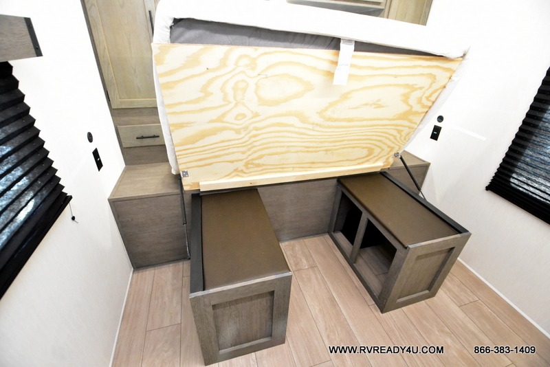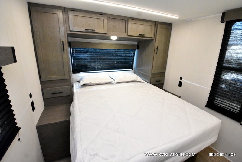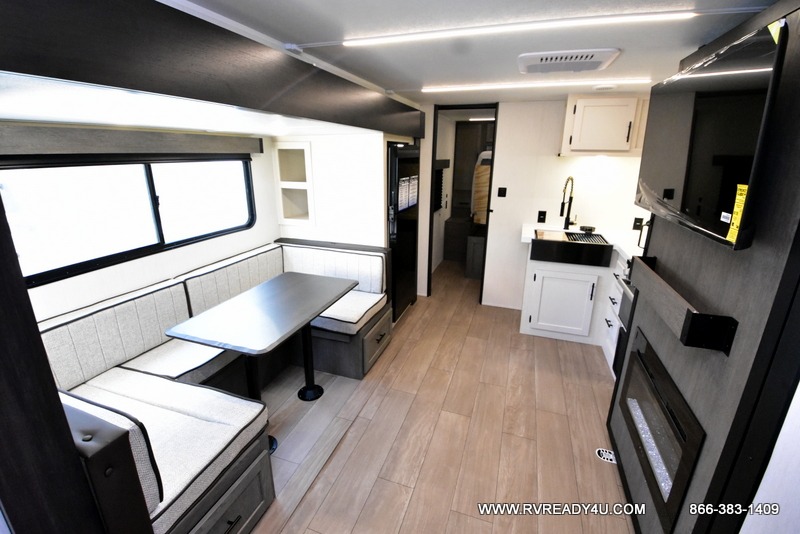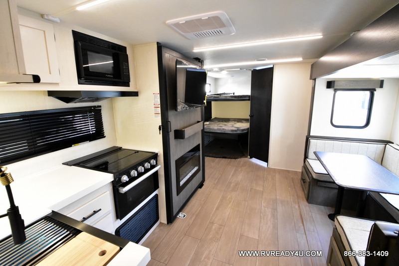 Make your dream of adventure a reality! This incredible travel trailer is perfect for creating lifelong memories with family and friends. The fun begins with the removable and stackable double-size bunk beds, ideal for kids or adults alike. The full bathroom provides convenience and comfort, making it easy to get ready for a day of exploration. The U-shaped dinette is a cozy spot for meals or relaxation while enjoying the amazing entertainment center. Plus, the kitchen area is equipped with a refrigerator, pantry storage, and microwave, making it easy to enjoy your favorite snacks and meals on the go. The 12V refrigerator keeps your food and drinks fresh, and the overhead cabinet provides additional storage for cookware and dishes.The front bedroom features a spacious queen bed, convenient nightstands, a stylish wardrobe, and overhead cabinets for storing your belongings and keeping everything organized.