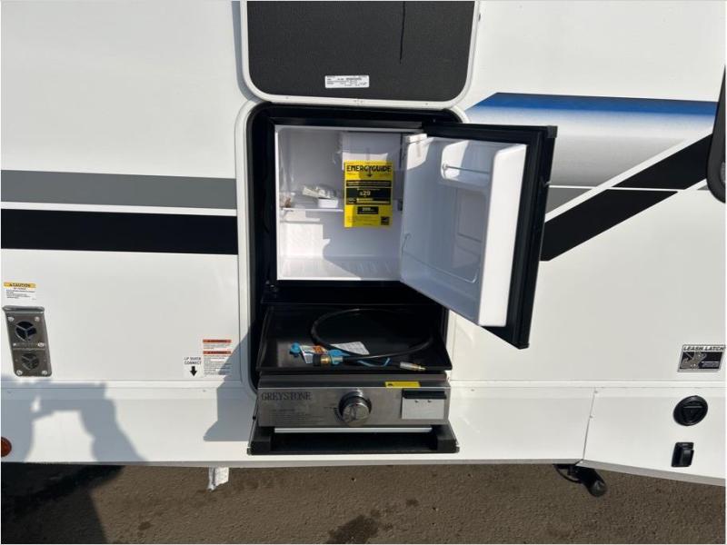 With any Cherokee Alpha Wolf travel trailer by Forest River, you'll enjoy outstanding amenities, quality construction, and an affordable price. Each model features a "ToughBend" rigid skirt metal design, 5/8" tongue and groove plywood floor decking, and a "SuperTruss" roof structure built for countless camping memories. There is a pet friendly "clean sweep" floor design with no heat vents indoors, along with a super lumen lighting system, a 15,000 BTU quick cool central air conditioning, and many more comforts. There are many convenient exterior features such as, Leash Latch pet safety technology, an outside shower with hot and cold water, and exterior steps with oversized landing and quick release. The Weather Guard Package will add protection against the elements with an armored underbelly tank enclosure and forced air heat, thermo-control reflective safety glass windows, and upgraded laminated exterior walls with block foam insulation!