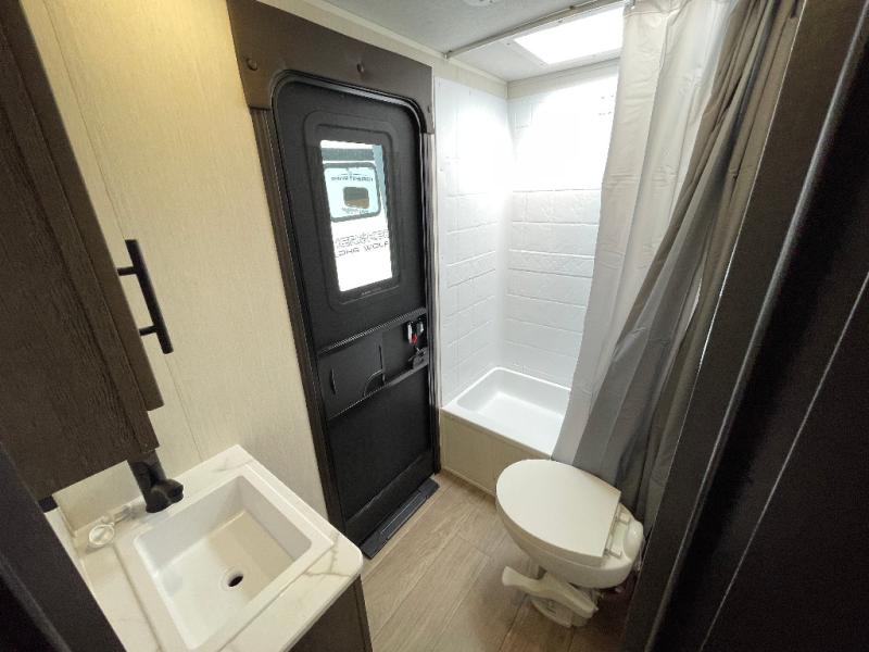 With any Cherokee Alpha Wolf travel trailer by Forest River, you'll enjoy outstanding amenities, quality construction, and an affordable price. Each model features a "ToughBend" rigid skirt metal design, 5/8" tongue and groove plywood floor decking, and a "SuperTruss" roof structure built for countless camping memories. There is a pet friendly "clean sweep" floor design with no heat vents indoors, along with a super lumen lighting system, a 15,000 BTU quick cool central air conditioning, and many more comforts. There are many convenient exterior features such as, Leash Latch pet safety technology, an outside shower with hot and cold water, and exterior steps with oversized landing and quick release. The Weather Guard Package will add protection against the elements with an armored underbelly tank enclosure and forced air heat, thermo-control reflective safety glass windows, and upgraded laminated exterior walls with block foam insulation!