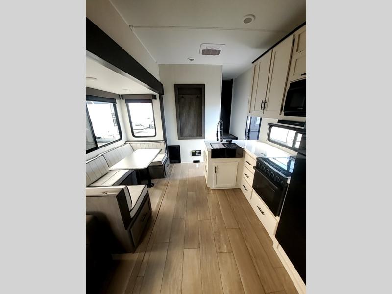 You'll have the very best time tackling outdoor adventures with the Forest River Cherokee Arctic Wolf fifth wheel! Each model has been constructed with a “ToughBend” rigid skirt metal design, Leash Latch pet safety technology, an outside shower with hot/cold water, and a 1x engineered wood “SuperTruss” roof structure with 3/8" decking for added durability. There is also an automatic leveling and stabilization system, plus 12V heat pads on all holding tanks with help withstand colder temperatures. Inside, you'll love the solid surface kitchen countertops, along with a carpetless floor design, and fully adjustable, slow rise, blackout roller shades. The on-demand tankless hot water heater will provide endless hot water and the central A/C unit with Quick Cool will ensure your comfort during those hot summer camping months. There are many more stand-out features found on these fifth wheels; check them out!