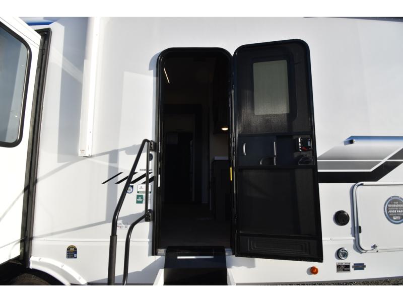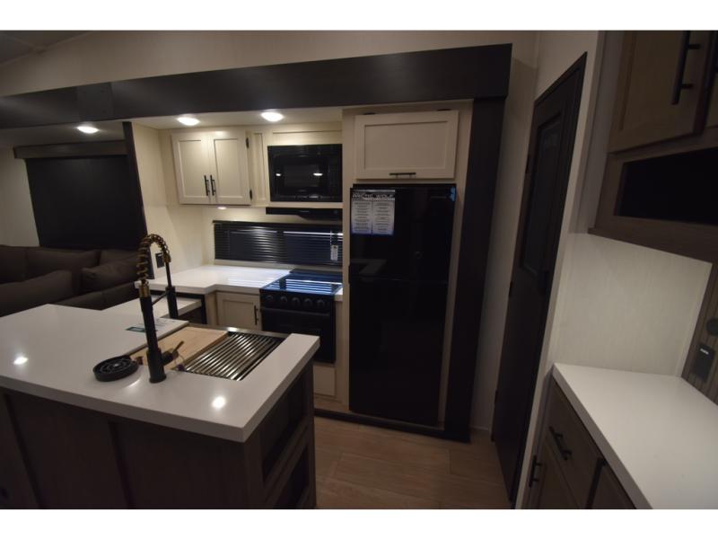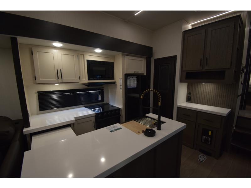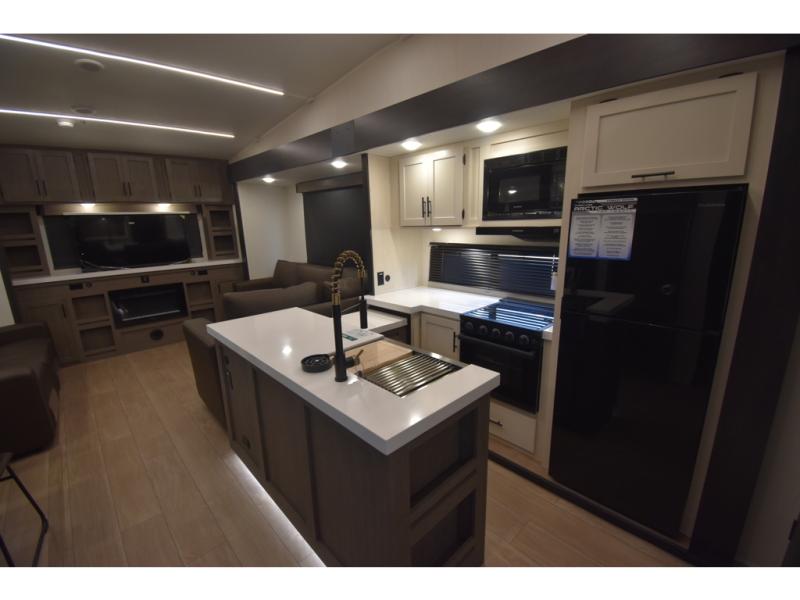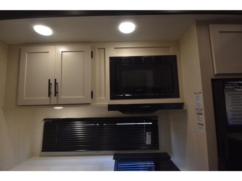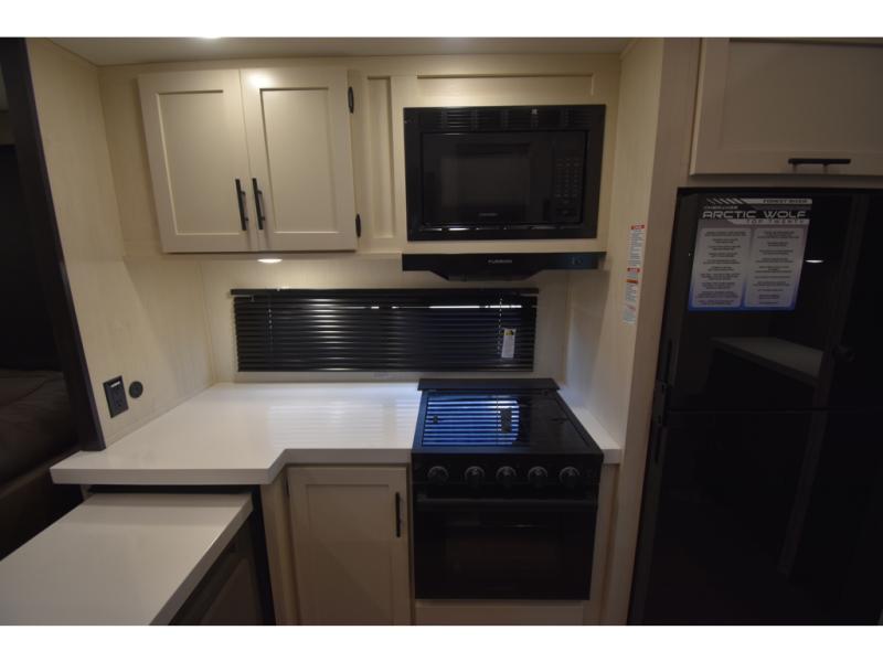 You'll have the very best time tackling outdoor adventures with the Forest River Cherokee Arctic Wolf fifth wheel! Each model has been constructed with a “ToughBend” rigid skirt metal design, Leash Latch pet safety technology, an outside shower with hot/cold water, and a 1x engineered wood “SuperTruss” roof structure with 3/8" decking for added durability. There is also an automatic leveling and stabilization system, plus 12V heat pads on all holding tanks with help withstand colder temperatures. Inside, you'll love the solid surface kitchen countertops, along with a carpetless floor design, and fully adjustable, slow rise, blackout roller shades. The on-demand tankless hot water heater will provide endless hot water and the central A/C unit with Quick Cool will ensure your comfort during those hot summer camping months. There are many more stand-out features found on these fifth wheels; check them out!