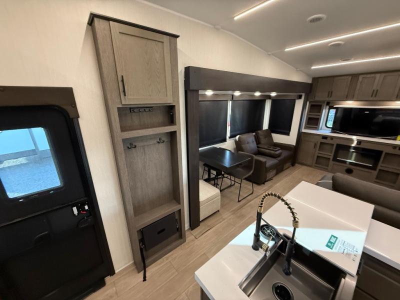 You'll have the very best time tackling outdoor adventures with the Forest River Cherokee Arctic Wolf fifth wheel! Each model has been constructed with a “ToughBend” rigid skirt metal design, Leash Latch pet safety technology, an outside shower with hot/cold water, and a 1x engineered wood “SuperTruss” roof structure with 3/8" decking for added durability. There is also an automatic leveling and stabilization system, plus 12V heat pads on all holding tanks with help withstand colder temperatures. Inside, you'll love the solid surface kitchen countertops, along with a carpetless floor design, and fully adjustable, slow rise, blackout roller shades. The on-demand tankless hot water heater will provide endless hot water and the central A/C unit with Quick Cool will ensure your comfort during those hot summer camping months. There are many more stand-out features found on these fifth wheels; check them out!