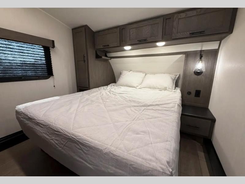 You'll have the very best time tackling outdoor adventures with the Forest River Cherokee Arctic Wolf fifth wheel! Each model has been constructed with a “ToughBend” rigid skirt metal design, Leash Latch pet safety technology, an outside shower with hot/cold water, and a 1x engineered wood “SuperTruss” roof structure with 3/8" decking for added durability. There is also an automatic leveling and stabilization system, plus 12V heat pads on all holding tanks with help withstand colder temperatures. Inside, you'll love the solid surface kitchen countertops, along with a carpetless floor design, and fully adjustable, slow rise, blackout roller shades. The on-demand tankless hot water heater will provide endless hot water and the central A/C unit with Quick Cool will ensure your comfort during those hot summer camping months. There are many more stand-out features found on these fifth wheels; check them out!