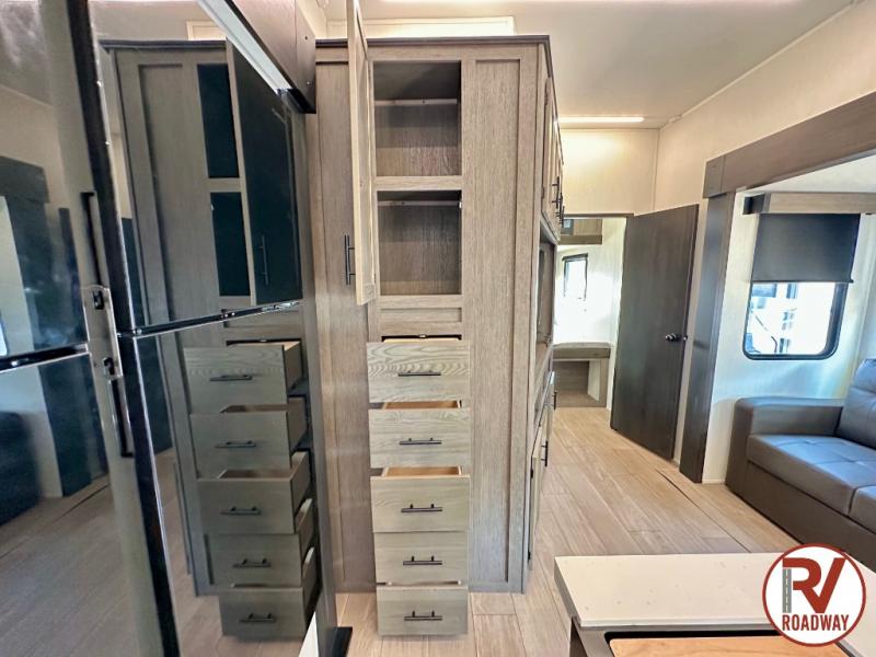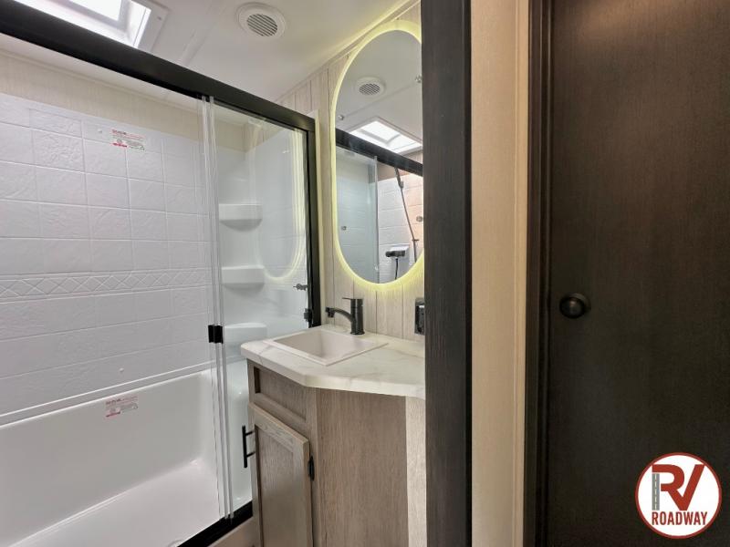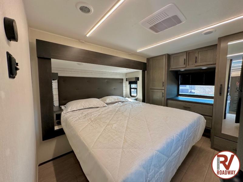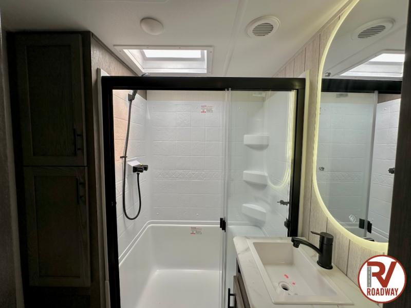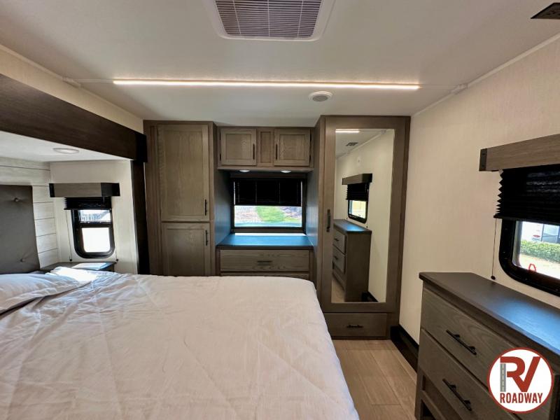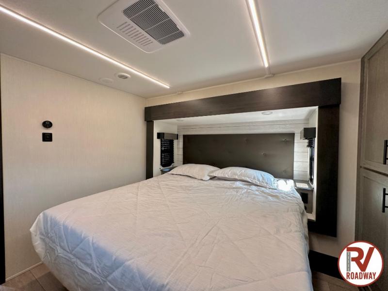 You will have amazing residential comfort in the Forest River Cherokee Arctic Wolf fifth wheels! These bed slide units have a “SuperStor” basement storage compartment to allow you to bring more gear, and they have been constructed with a “ToughBend” rigid skirt metal design, a 1x engineered wood “SuperTruss” roof structure with 3/8" decking, and a 5/8” tongue-and-groove plywood floor decking. Each model includes Leash Latch pet safety technology, an outside shower with hot/cold water and preparations for an exterior TV. The supersized central air conditioning unit (15,000 BTU) with quick cool and second oversized 15,000 BTU ducted A/C will cool your unit down in a snap when you camp in the hot summer months.