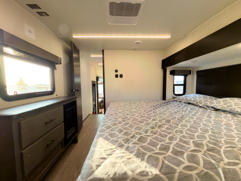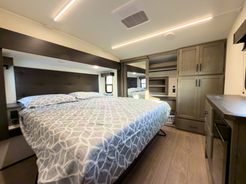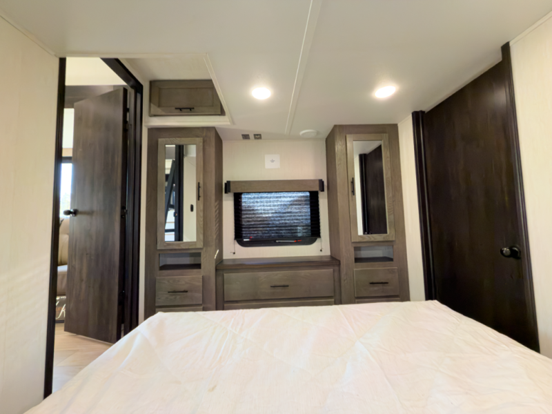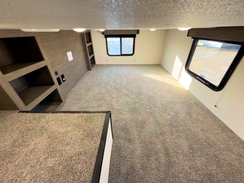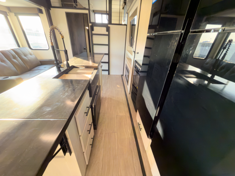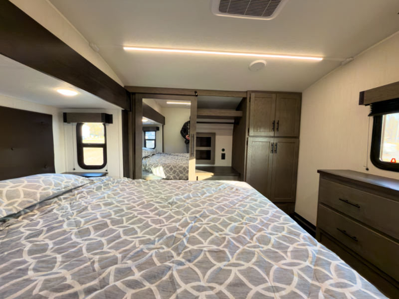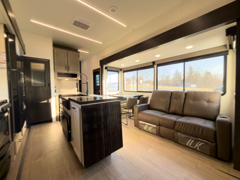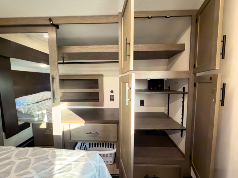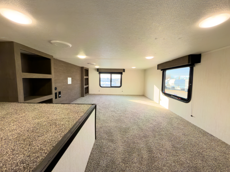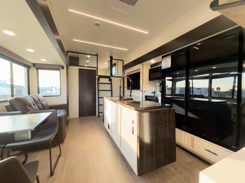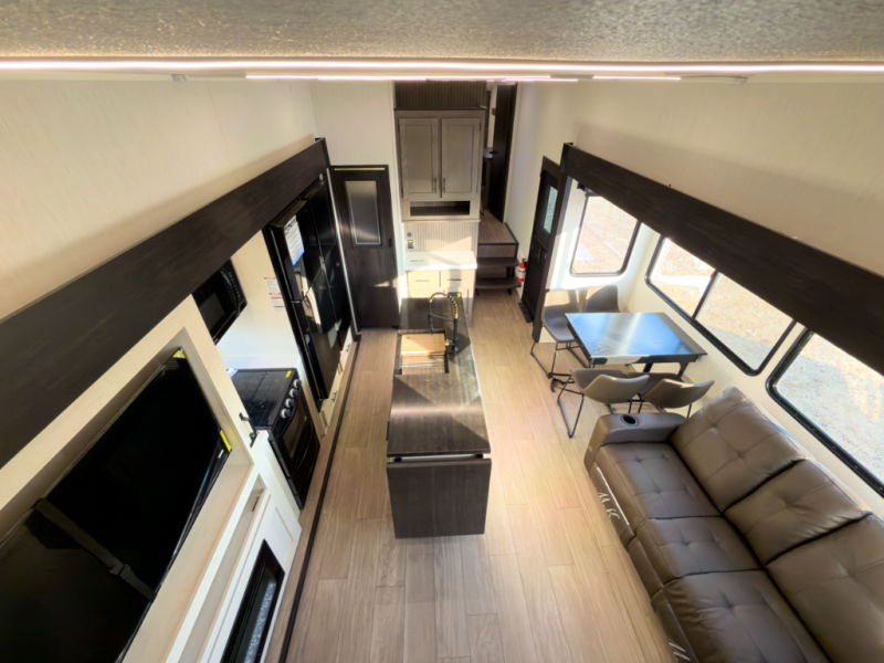 - Layout: Bunkhouse fifth wheel with defined living zones