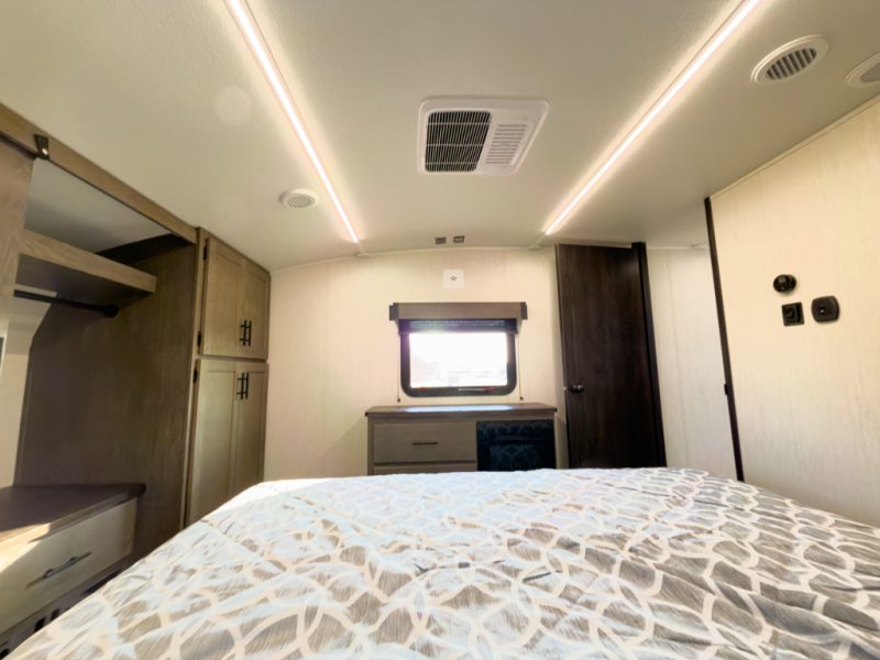 - Bedroom: Private primary bedroom away from bunks