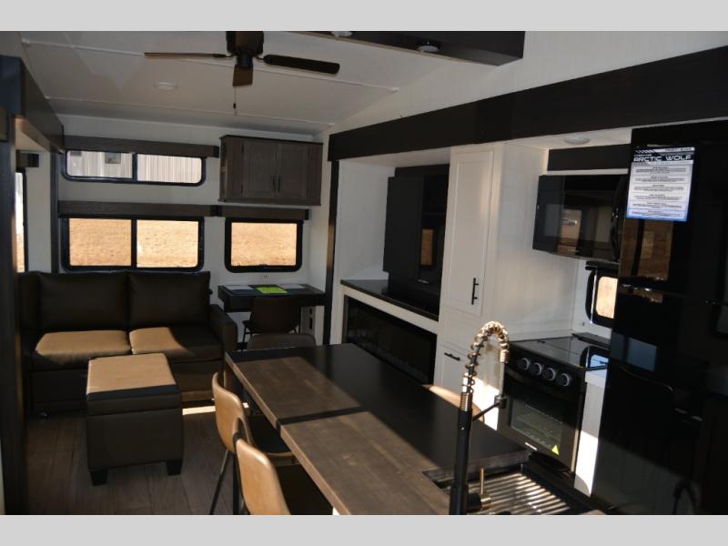 You'll have the very best time tackling outdoor adventures with the Forest River Cherokee Arctic Wolf fifth wheel! Each model has been constructed with a “ToughBend” rigid skirt metal design, Leash Latch pet safety technology, an outside shower with hot/cold water, and a 1x engineered wood “SuperTruss” roof structure with 3/8" decking for added durability. There is also an automatic leveling and stabilization system, plus 12V heat pads on all holding tanks with help withstand colder temperatures. Inside, you'll love the solid surface kitchen countertops, along with a carpetless floor design, and fully adjustable, slow rise, blackout roller shades. The on-demand tankless hot water heater will provide endless hot water and the central A/C unit with Quick Cool will ensure your comfort during those hot summer camping months. There are many more stand-out features found on these fifth wheels; check them out!