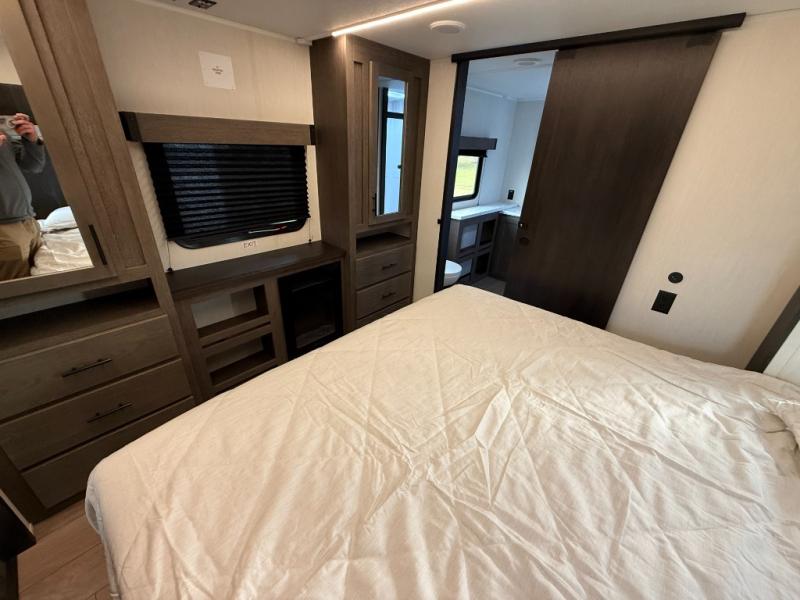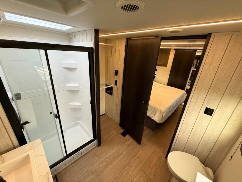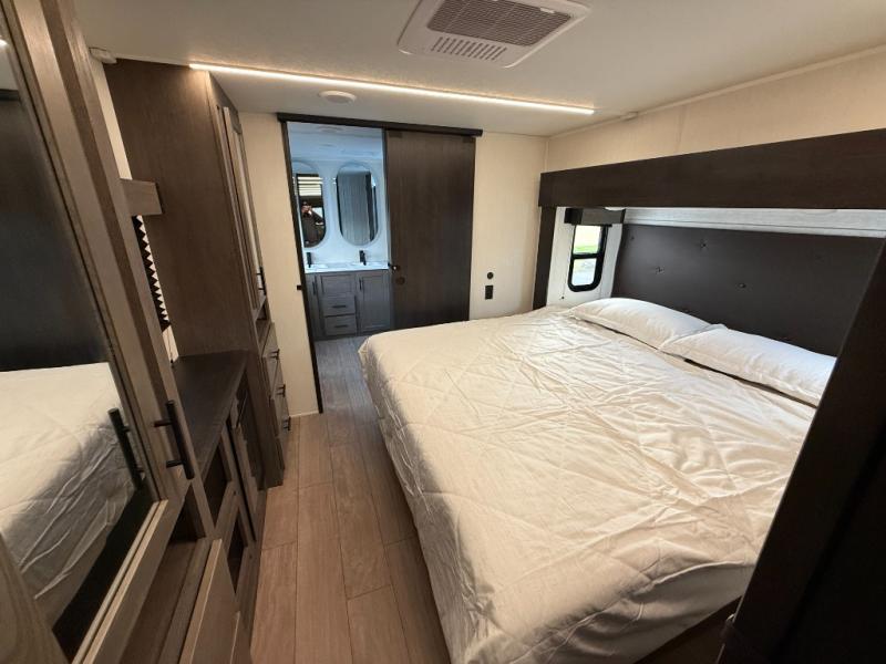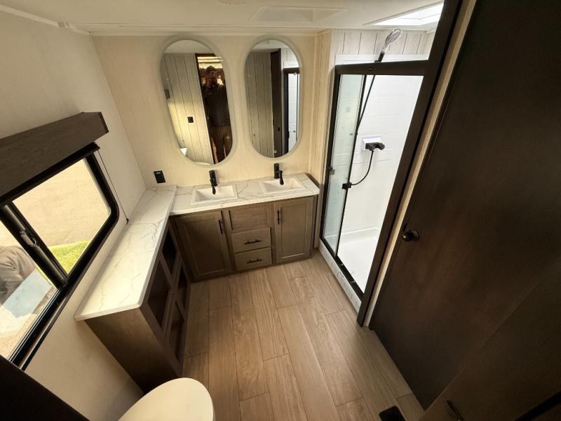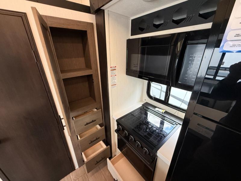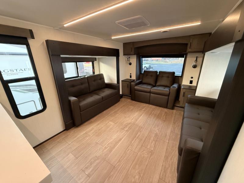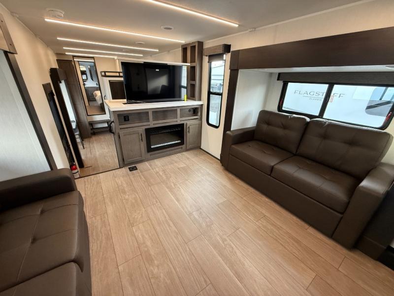 You will have amazing residential comfort in the Forest River Cherokee Arctic Wolf fifth wheels! These bed slide units have a “SuperStor” basement storage compartment to allow you to bring more gear, and they have been constructed with a “ToughBend” rigid skirt metal design, a 1x engineered wood “SuperTruss” roof structure with 3/8" decking, and a 5/8” tongue-and-groove plywood floor decking. Each model includes Leash Latch pet safety technology, an outside shower with hot/cold water, preparations for an exterior TV. The supersized central air conditioning unit (15,000 BTU) with quick cool and second oversized 15,000 BTU ducted A/C will cool your unit down in a snap when you camp in the hot summer months.