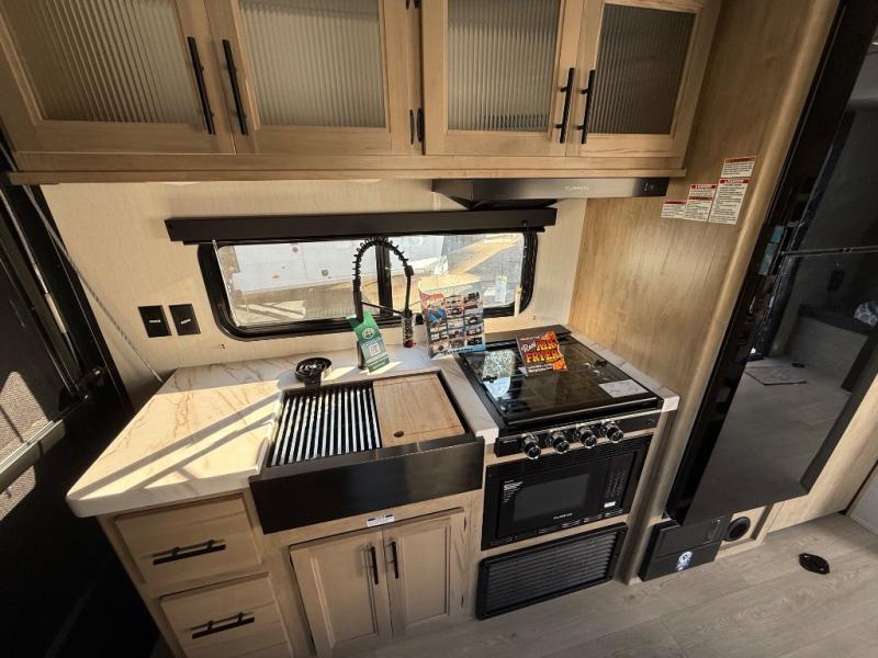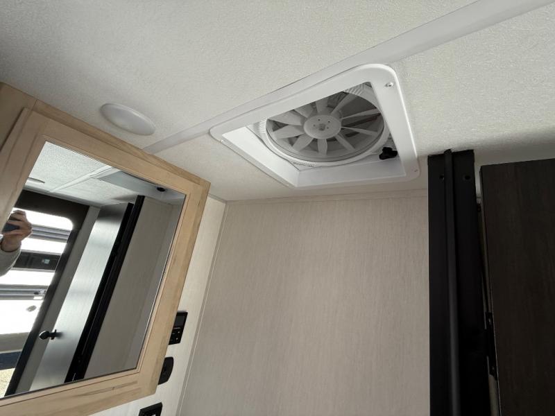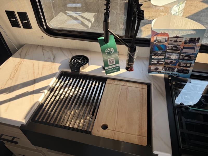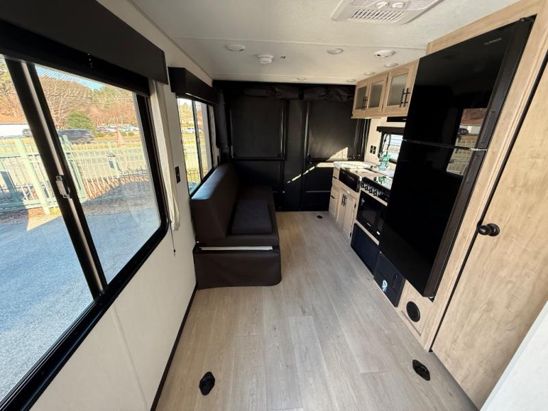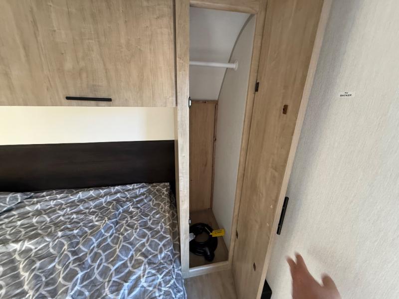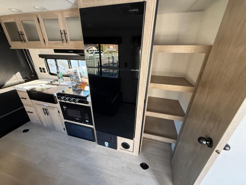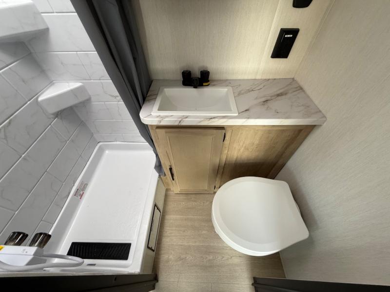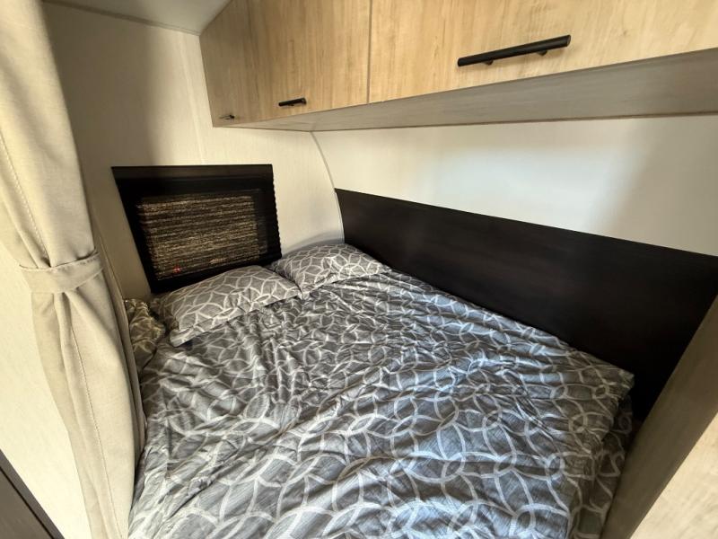 You will undoubtedly love this Cherokee Grey Wolf toy hauler! Because of its ability to have up to 15' 2" of cargo space, you can easily load up the ramp door and head out to your outdoor toy land, and you can bring much more than just your toys since this trailer also comes with exterior storage, a bedside wardrobe, overhead cabinets, a refrigerator, and a kitchen pantry. The full bathroom is another feature that is going to allow you to experience a true getaway since you won't need to find public facilities to use while you're gone, and the USB charging stations will allow you to charge your phone inside while you're outside playing.