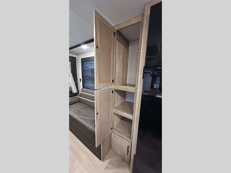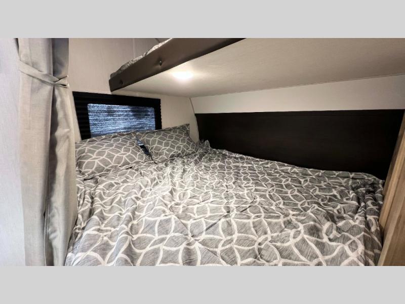 A family of seven or eight can enjoy many outdoor adventures in this Cherokee Grey Wolf travel trailer which features two queen beds and a bunk above the front bed. With the rear queen bed slide, you gain sleeping space without having additional tow length added. You will find large overhead cabinets inside, a pantry to bring along your favorite snacks, and a wardrobe for keeping your clothes wrinkle free. There is a booth dinette for you to enjoy your meals at or play some card games, and there is also a sofa for those who just want to sit back and watch. A conveniently located bathroom that sits directly across from the main entry makes it easy to access from outside. There is also a nice 15' awning for creating additional living space so that you can enjoy the outdoors whether rain or shine!