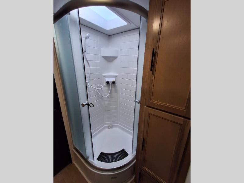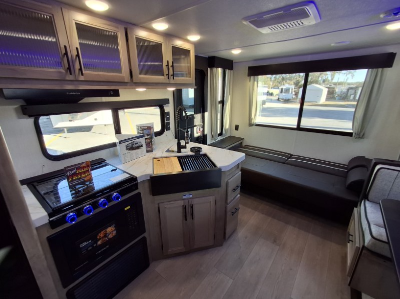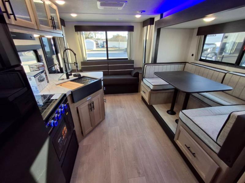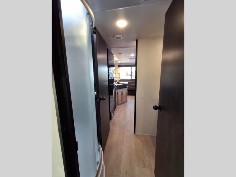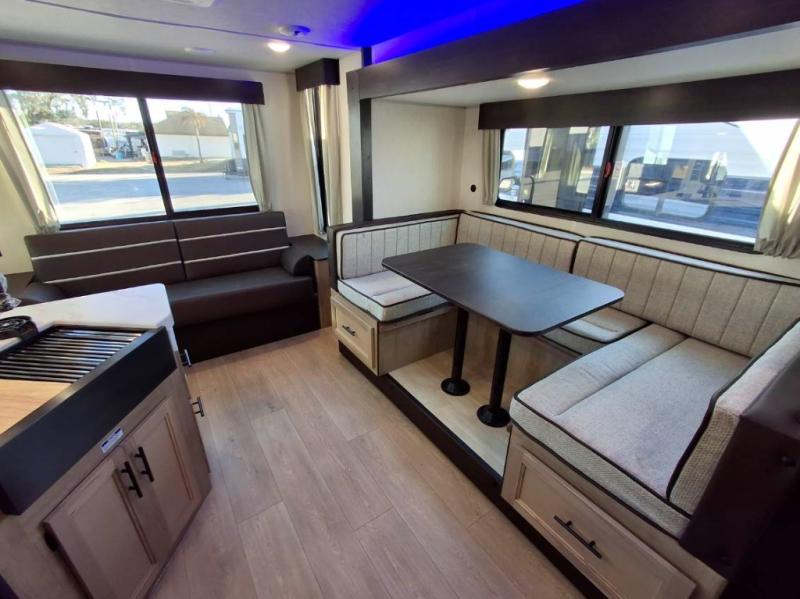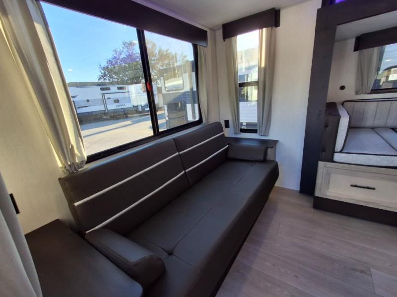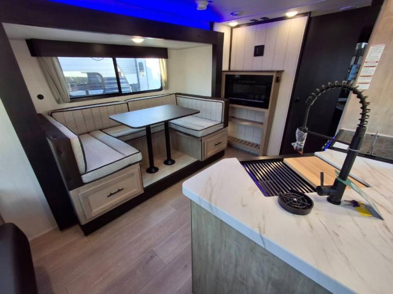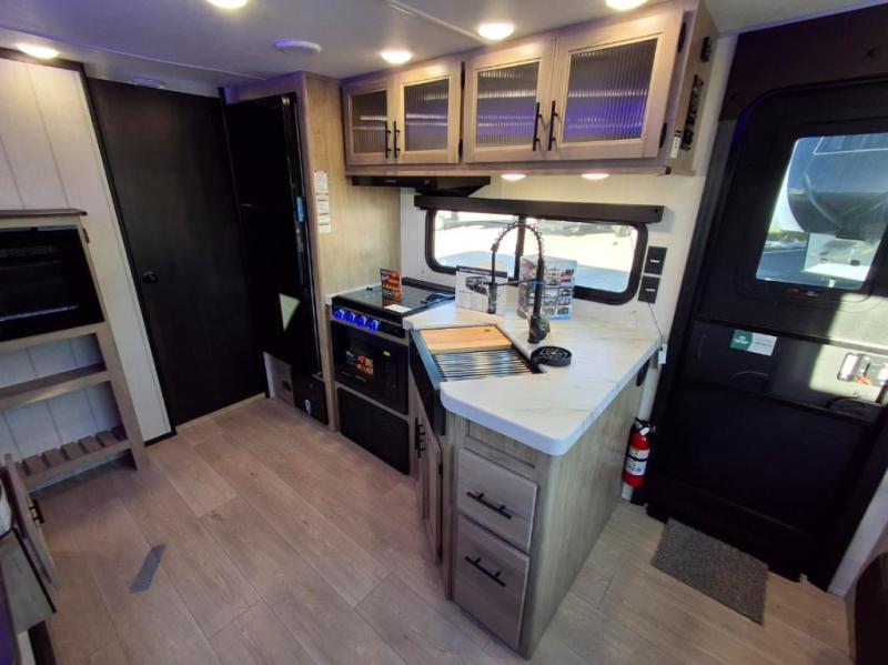 This Cherokee Grey Wolf travel trailer is perfect for your small family and will leave you planning your next outing before you are back from your current weekend away! You will find all of the comforts you need with plenty of livable space including a U-shaped dinette slide. There is also a sofa for more seating when company arrives, and there are end tables on either side to prevent spills. A spacious walk-through bath leads to a front private bedroom where you will enjoy a great night's rest on a comfortable RV king bed. You will find ample storage for clothing in the wardrobes that are above handy nightstands for your personal things.
