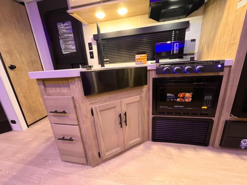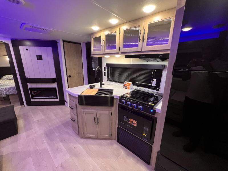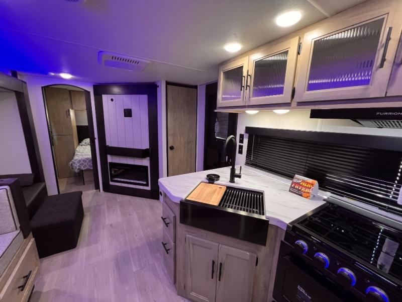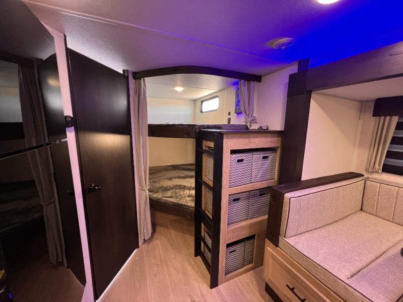 DOUBLE BUNK BEDS / OUTDOOR KITCHEN/ KING BED / FIRE PLACE /TWO FULL SIZE BUNKS / TWO ENTRY DOORS / ALL POWER JACKS / 200 W SOLAR
