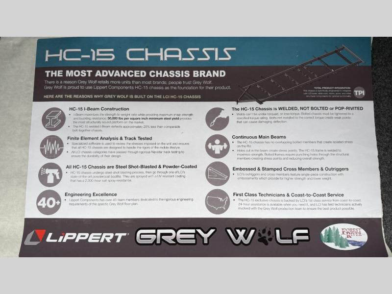 Whether it's a journey that will take you to new locations or a tried-and-true getaway to that favorite and memorable destination, the Forest River Cherokee Grey Wolf travel trailers and toy haulers are going to make the trip worth it every single time! You can travel in confidence with the premium wheel package, seamless roofing membrane with heat reflectivity, Power Gear frame technology with space-saver rail design, and Cherokee back-up camera system. The Cherokee Grey Wolf's interior is highly attractive with its stainless steel kitchen suite package and premium bedding ensemble and comforter. You will also find a black waste tank flush-out kit, an outside shower with hot and cold water, an armored underbelly tank enclosure, and an RV grill quick connect.