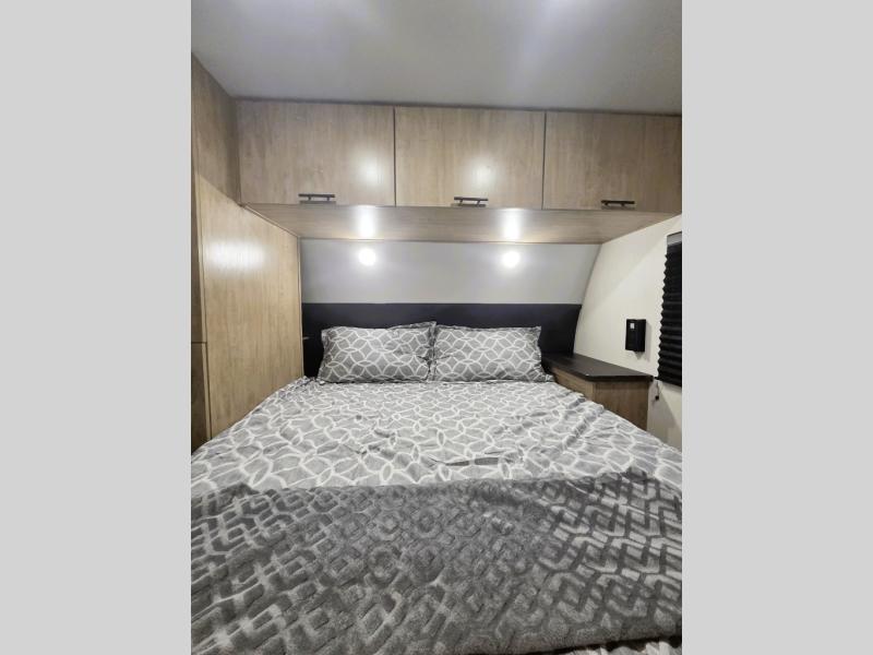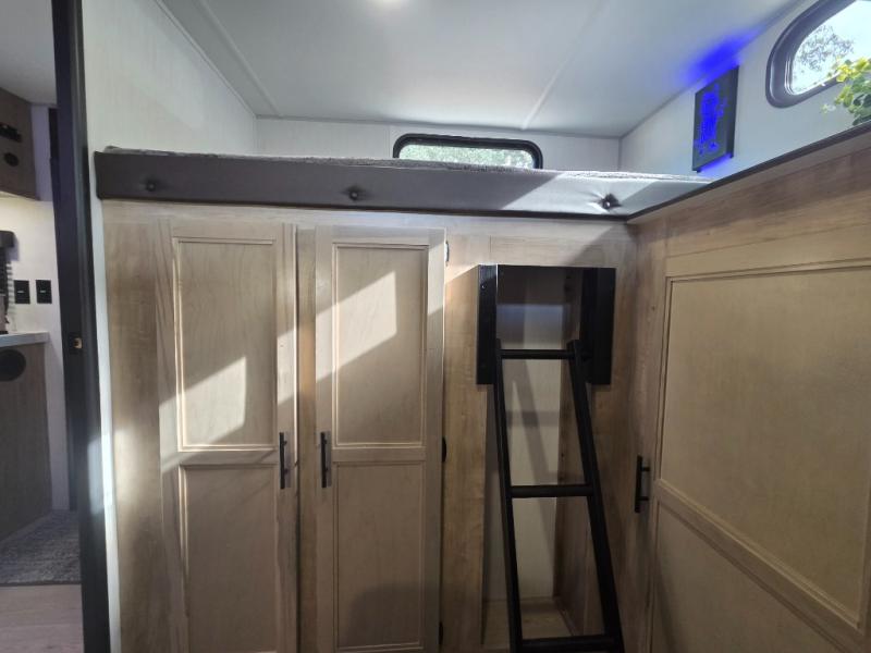 Your larger family will love spending weekends away with this Cherokee Grey Wolf travel trailer as their home away from home. This model offers lots of sleeping space with three bunk beds in the rear private bunkhouse. In the front, there is a master suite with a wardrobe beside RV king bed, and it even has private access to the dual-entry bath. The two entry doors will make accessing the trailer easy for everyone, and you will appreciate the abundant storage throughout this unit including large overhead cabinets, a spacious pantry, and numerous outside storage compartments for all of your outdoor gear. There's even an outside bar & grill!