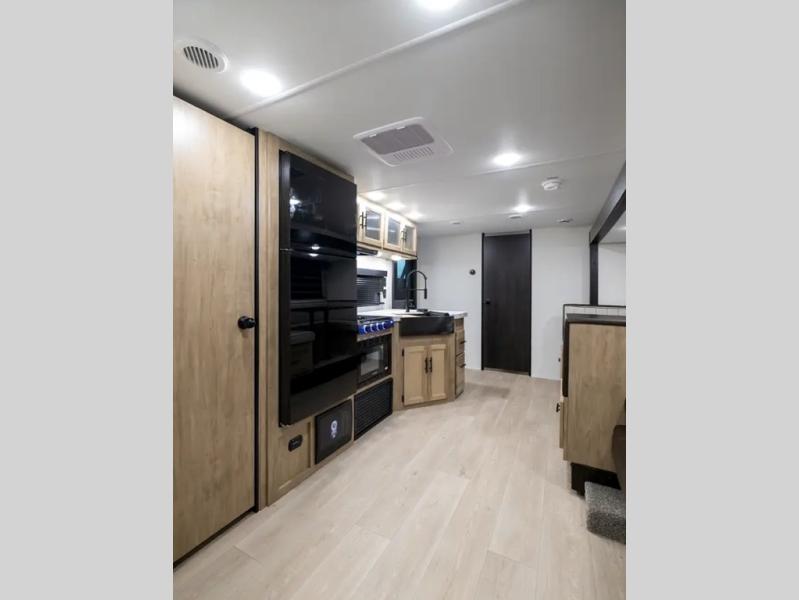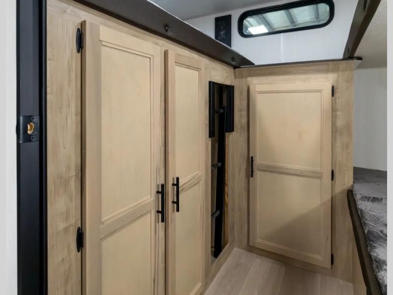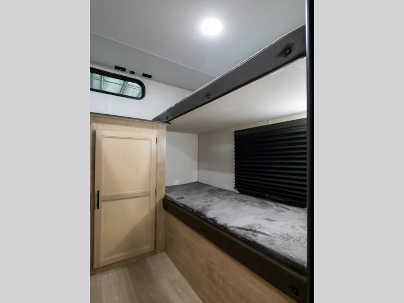 Your larger family will love spending weekends away with this Cherokee Grey Wolf travel trailer as their home away from home. This model offers lots of sleeping space with three bunk beds in the rear private bunkhouse. In the front, there is a master suite with a wardrobe beside RV king bed, and it even has private access to the dual-entry bath. The two entry doors will make accessing the trailer easy for everyone, and you will appreciate the abundant storage throughout this unit including large overhead cabinets, a spacious pantry, and numerous outside storage compartments for all of your outdoor gear. There's even an outside bar & grill!