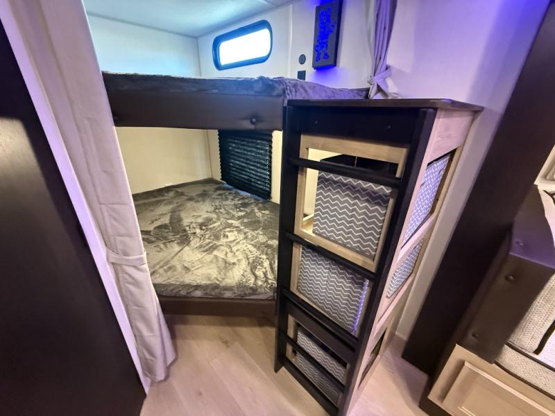 BLACK LABEL / DOUBLE BUNK BEDS / OUTDOOR KITCHEN/ KING BED / FIRE PLACE /TWO FULL SIZE BUNKS / TWO ENTRY DOORS / ALL POWER JACKS / 200 W SOLAR
