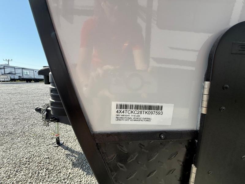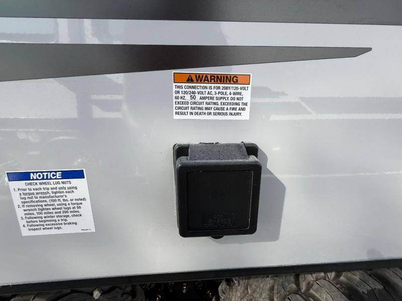 This Cherokee Grey Wolf Black Label toy hauler is perfect for those who are concerned about keeping the fuel smells and grime from entering the main living area. In this unit you can enjoy the separation with a door and the walk-though bath. In the cargo area, you will have plenty of space for hauling all of your favorite toys. This area also features dual fold-down sofas with a removable table that is great for your thrill seekers to come in for a break from riding. It also allows quick access into the bathroom without having to wander through the entire main living area where you are likely to leave a trail behind. After a full day of playing hard, you can get cleaned up and head into the main kitchen area where you will enjoy a U-shaped dinette. A full kitchen allows you to refuel your body, and there is also an RV king bed up front for a great night's rest!