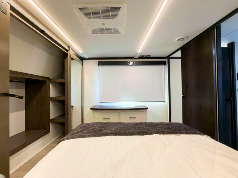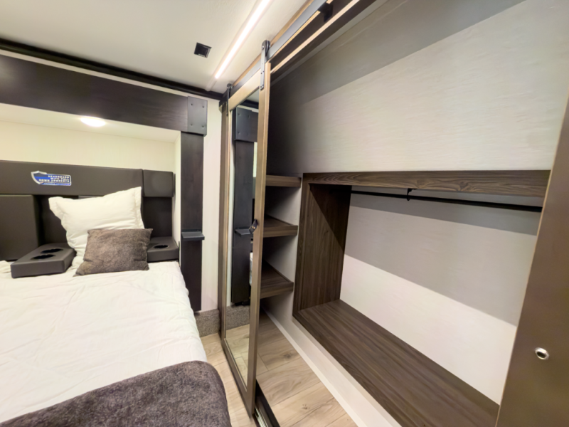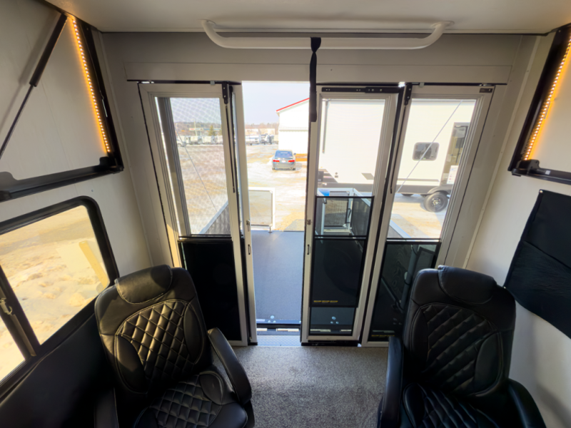 - Euro recliners, hidden pantry, queen bed slide, two power awnings