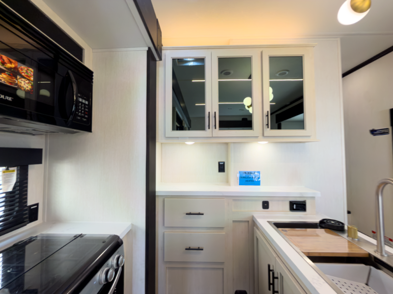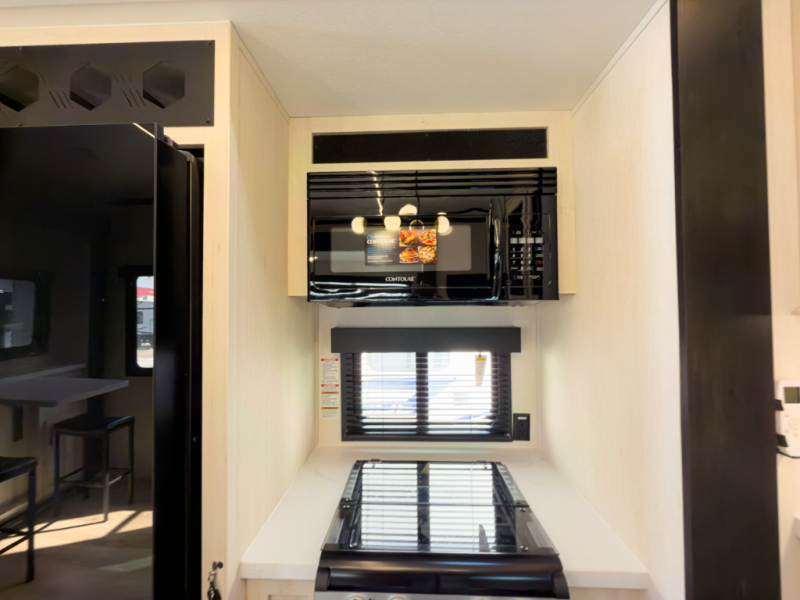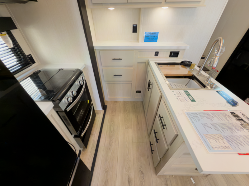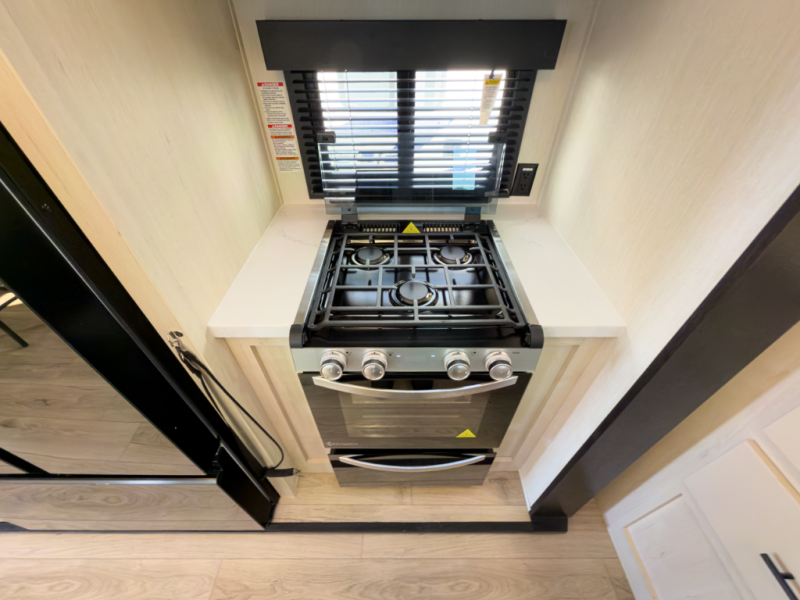 - 17 cu ft 12V residential style refrigerator, 3-burner cooktop