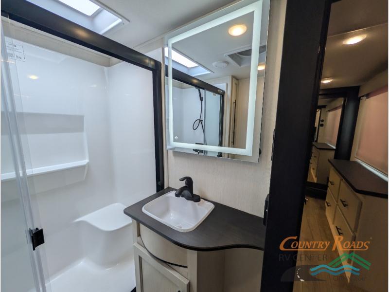 You will experience luxurious camping trips at an affordable price with any one of these Forest River Cherokee Sabre fifth wheels! These models are durable and ready to travel anytime of the year thanks to features like the high-gloss gel-coat front cap with LED lighting, the PVC roof membrane, and the forced air underbelly with enclosed gate valves. The electric auto-leveling system makes setting up easy and safe, and the adjustable power awning with LED lighting will create an inviting outdoor living space. Each model includes a universal docking station which includes a black tank flush and an outside shower, and adjustable stable steps for you to enter and exit the unit safely. Inside, you will love the design of the ambient accent lighting in the living area, the real wood lumbercore cabinetry, and the linoleum flooring!