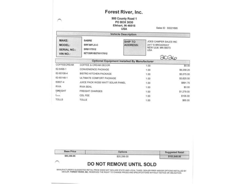 Forest River Cherokee Sabre fifth wheel 36FLX highlights: