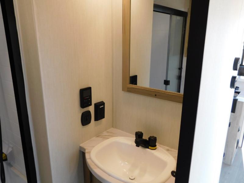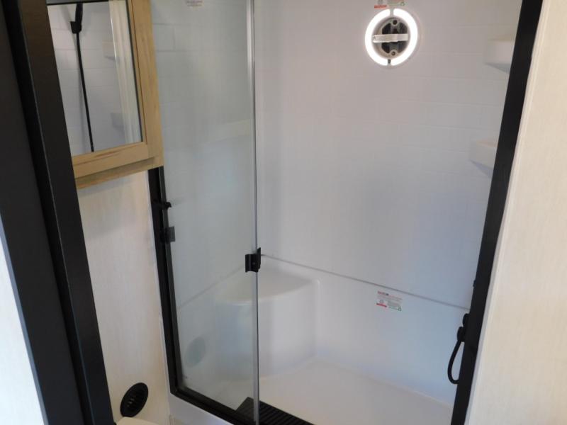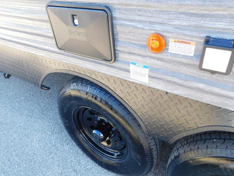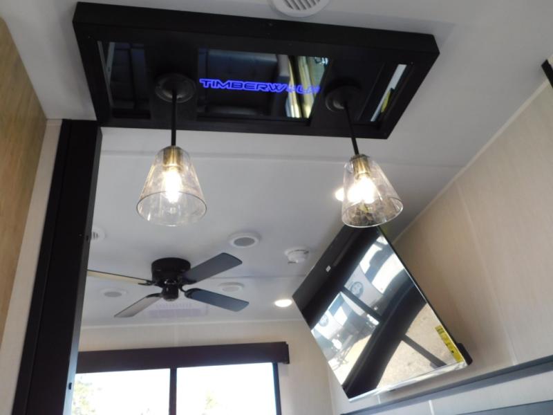 Enjoy comforts of home wherever you decide to roam in a Timberwolf destination trailer by Forest River. The seamless roofing membrane with heat reflectivity and power gear frame technology provide a durable foundation to your RV. You will also appreciate the exclusive solar thermo controlled reflective tinted safety glass windows, tire pressure monitors, and an on-demand tankless water heater to make extended stays easier than ever. Inside, the night shades will provide your crew with privacy, while the LED lights illuminate your space. There are also seamless countertops, along with a premium bedding ensemble and comforter, USB charging stations, a supersized central A/C unit, and many more comforts!