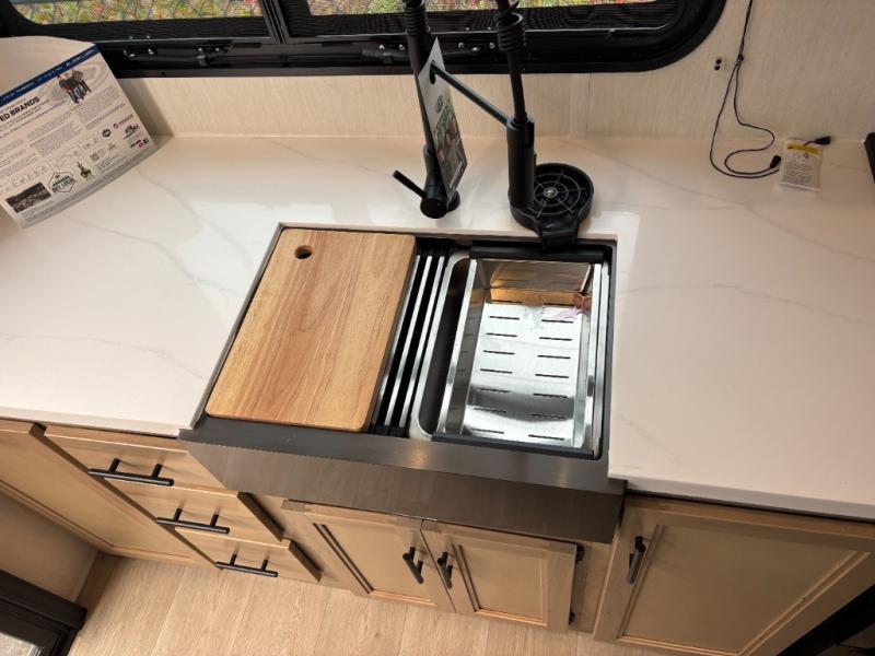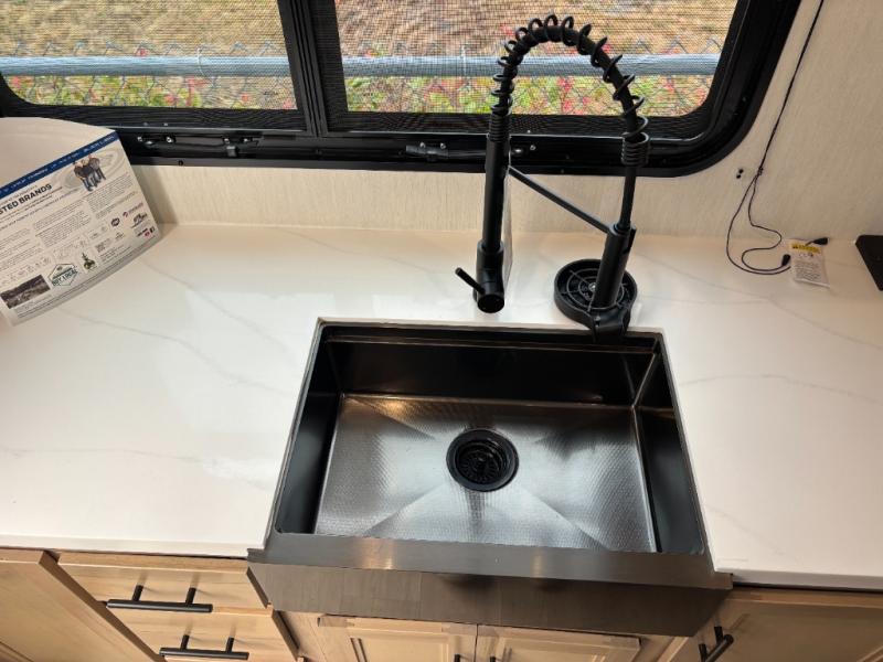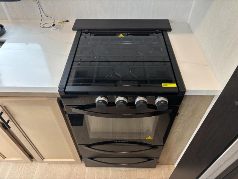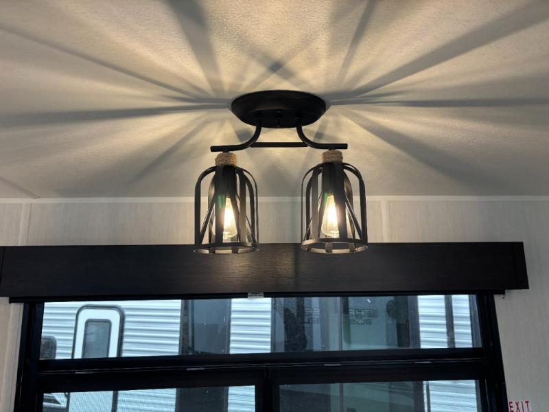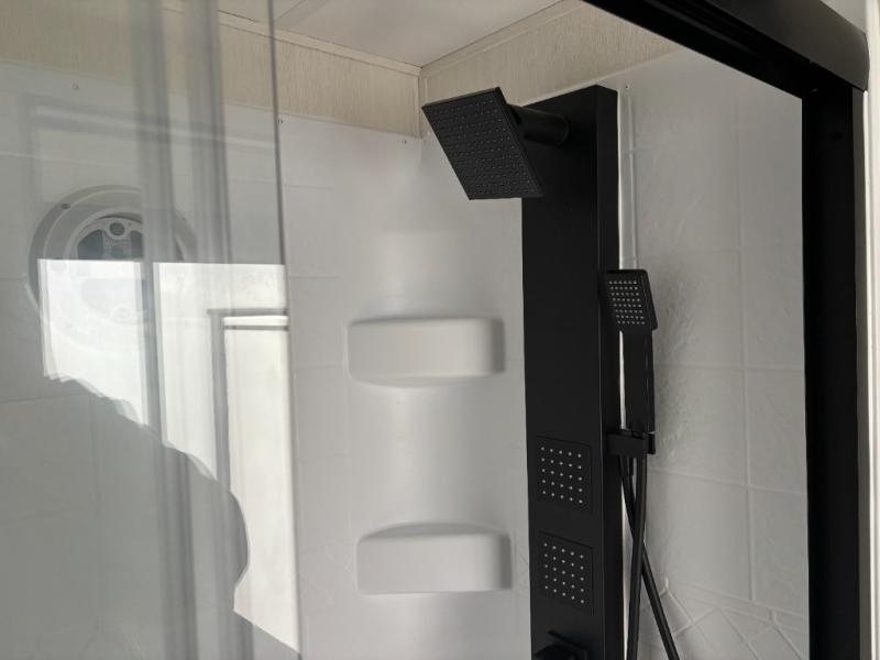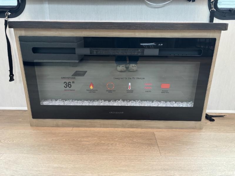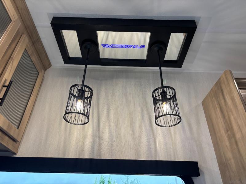 Enjoy comforts of home wherever you decide to roam in a Cherokee Timberwolf Black Label destination trailer by Forest River. The seamless roofing membrane with heat reflectivity provide a durable foundation to your RV. You will also appreciate the exclusive solar thermo controlled reflective tinted safety glass windows, and an on-demand tankless water heater to make extended stays easier than ever. Inside, the night shades will provide your crew with privacy, while the fireplace will create a cozy atmosphere. There are also seamless countertops, along with a premium bedding ensemble and comforter, USB charging stations, and a supersized central A/C unit. The Black Label Package features hung fiberglass gel coat sided walls, Thermo-Foil Arctic insulation, and a frameless window package. There are also upgraded reading lights, designer cushion fabric, and upgraded solid surface countertops to have you feeling right at home!