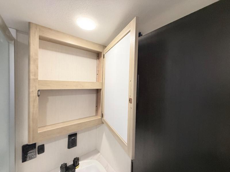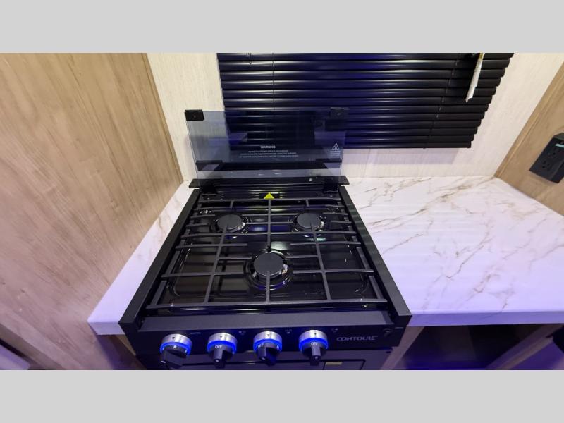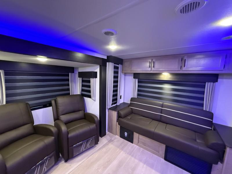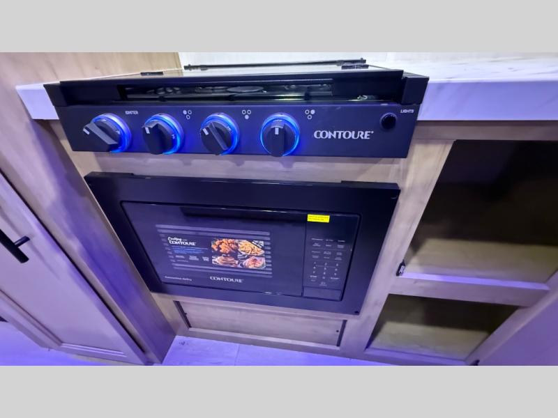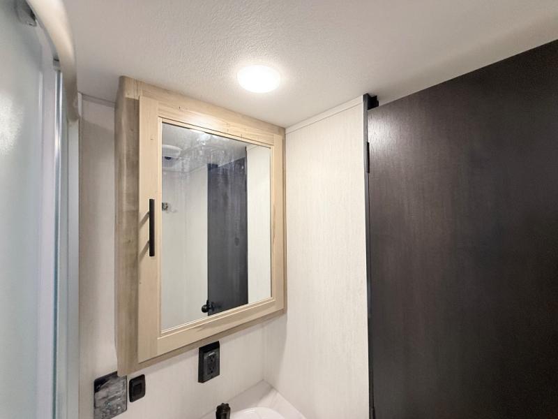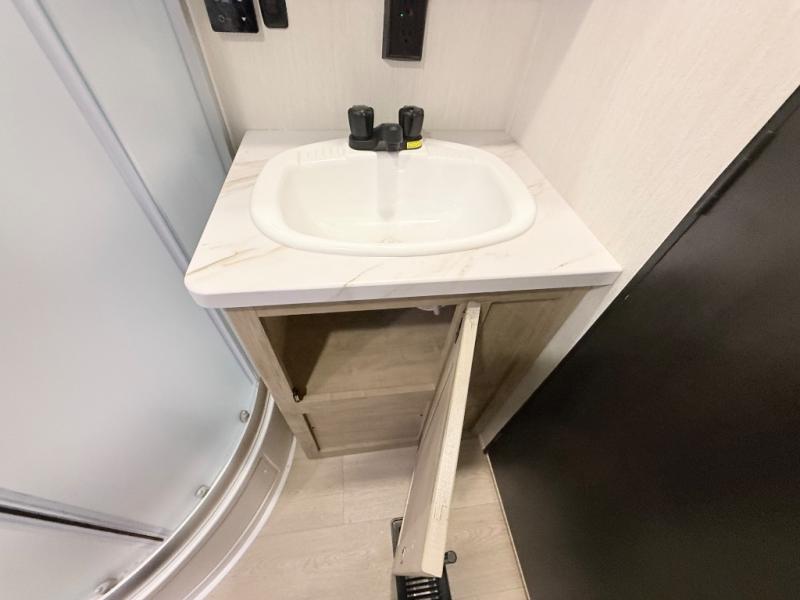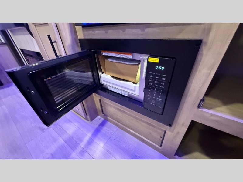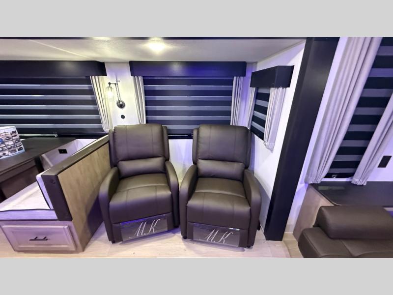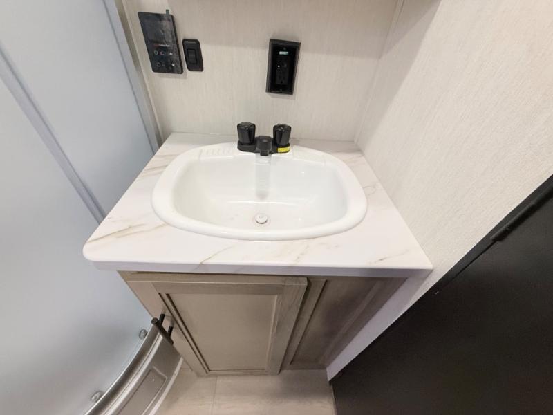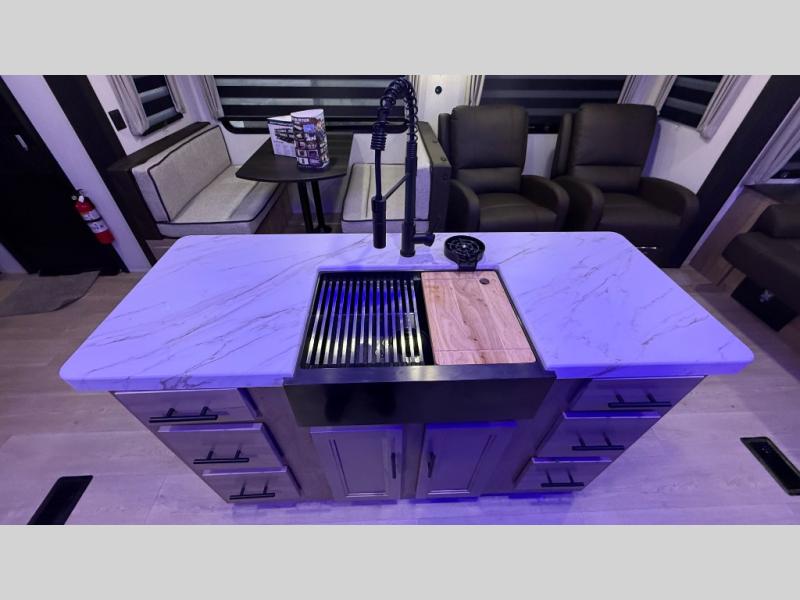 You'll love every minute spent in this double slide out travel trailer. You can relax on the rear sofa or dual lounge chairs, play a game at the booth dinette, and enjoy the glow of the fireplace. The chef of your group will appreciate the kitchen island, air fryer, plus refrigerator and pantry for food storage. A dual entry bath will create a front master bedroom, complete with an RV king bed and a bedside wardrobe to keep your space tidy.