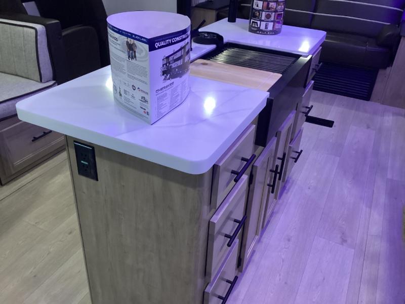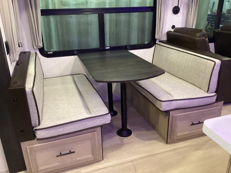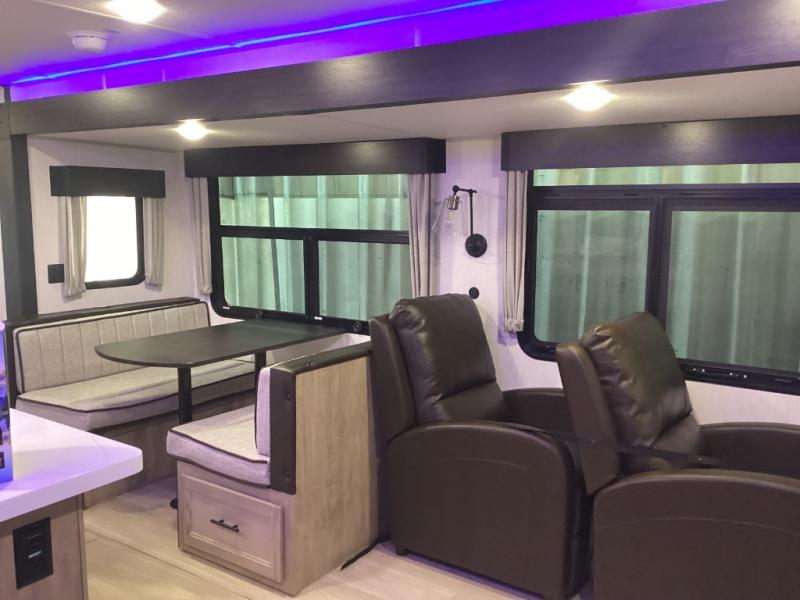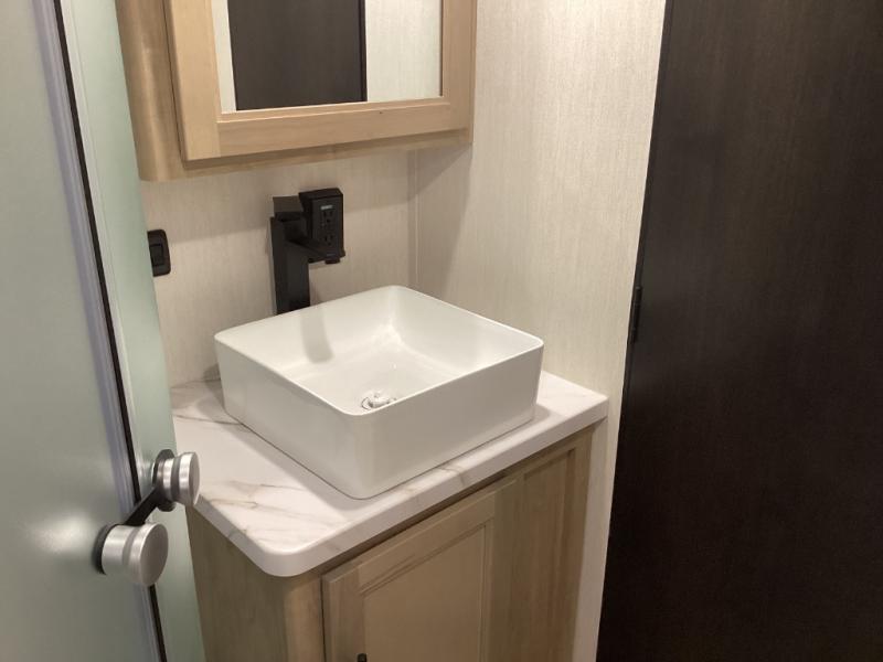 Enjoy upgraded touches like modern cabinetry, high-efficiency climate control, and plenty of storage throughout. And when it’s time to relax outside, you’ll love the power awning, outdoor speakers, and wide pass-through storage for all your adventure gear.