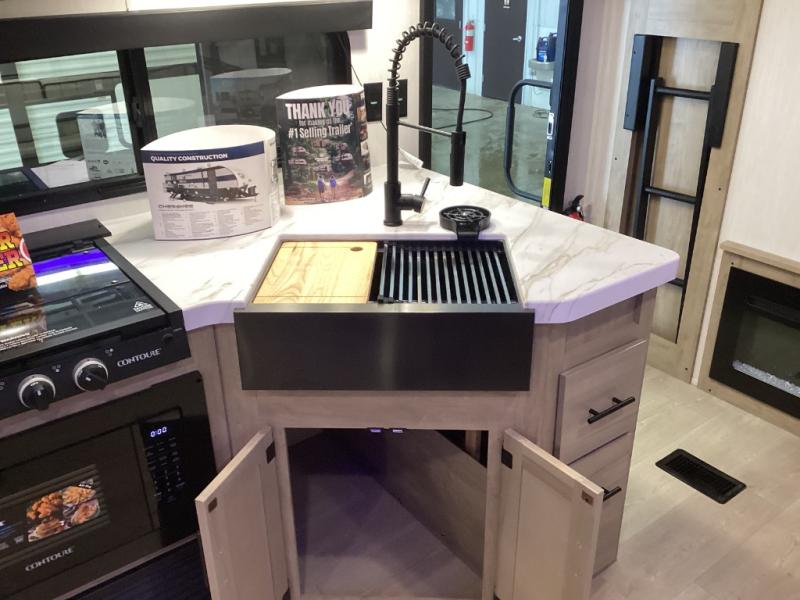 The rear garage area is built to haul equipment, tools, and outdoor toys. Once you’re set up at camp, it easily converts into additional living or sleeping space, giving you flexibility no matter the trip.