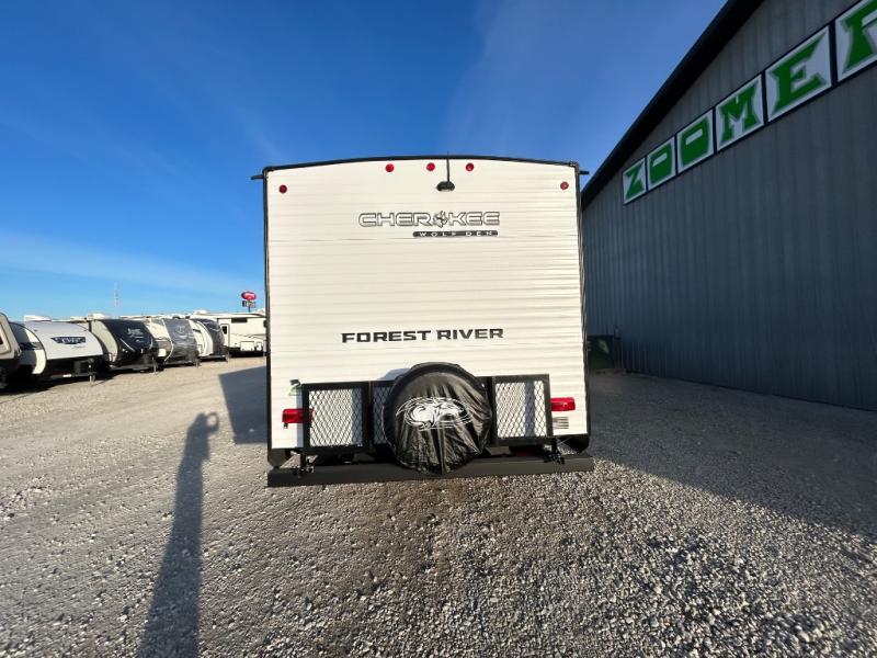 If the open road is calling your name, then answer it with one of these Forest River Cherokee Wolf Den travel trailers! You'll find better comfort, style and value in these trailers, giving you more freedom to enjoy the camping lifestyle. Like with all Forest River products, the Wolf Den features durable construction materials and convenient amenities, such as outdoor storage and battery disconnect. With at least one slide in each model, you'll enjoy open living spaces, along with full bath and kitchen amenities, and comfortable sleeping arrangements.