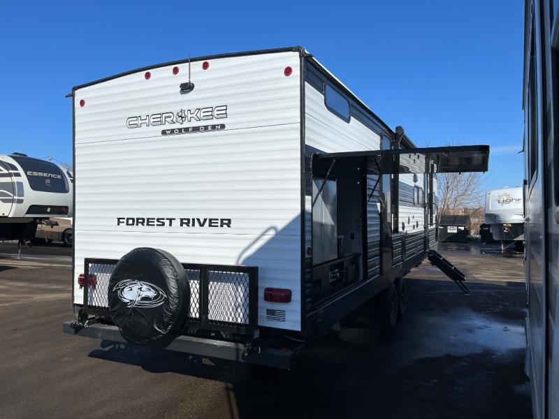 If the open road is calling your name, then answer it with one of these Forest River Cherokee Wolf Den travel trailers! You'll find better comfort, style and value in these trailers, giving you more freedom to enjoy the camping lifestyle. Like with all Forest River products, the Wolf Den features durable construction materials and convenient amenities, such as outdoor storage and battery disconnect. With at least one slide in each model, you'll enjoy open living spaces, along with full bath and kitchen amenities, and comfortable sleeping arrangements.