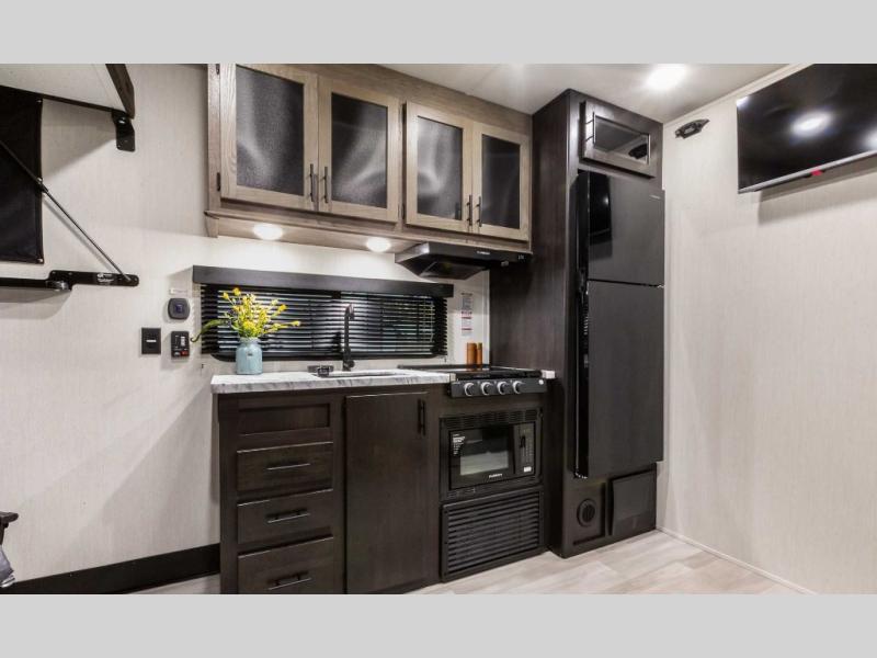 With any Cherokee Wolf Pack toy hauler by Forest River, you will enjoy never-ending adventures. You'll appreciate the 8' 6" wide body design so you can bring along toys and gear, and there is 4-camera prep with a rear camera if you want the option to make parking easier than ever. There is real wood cabinet doors and drawers inside and LED lights to keep your space well lit. These toy haulers are built with tongue and groove plywood main floors and a forced air heated underbelly and enclosed holding tanks that will help you extend your camping season.