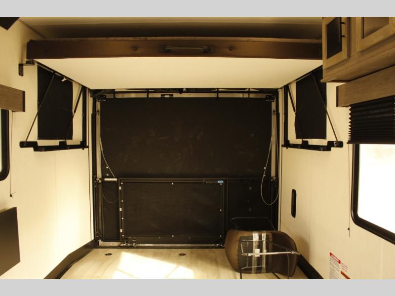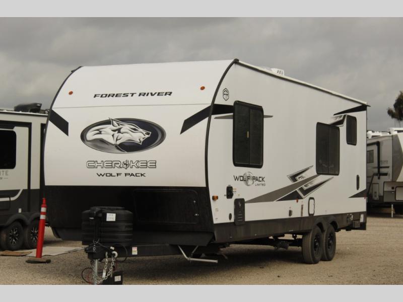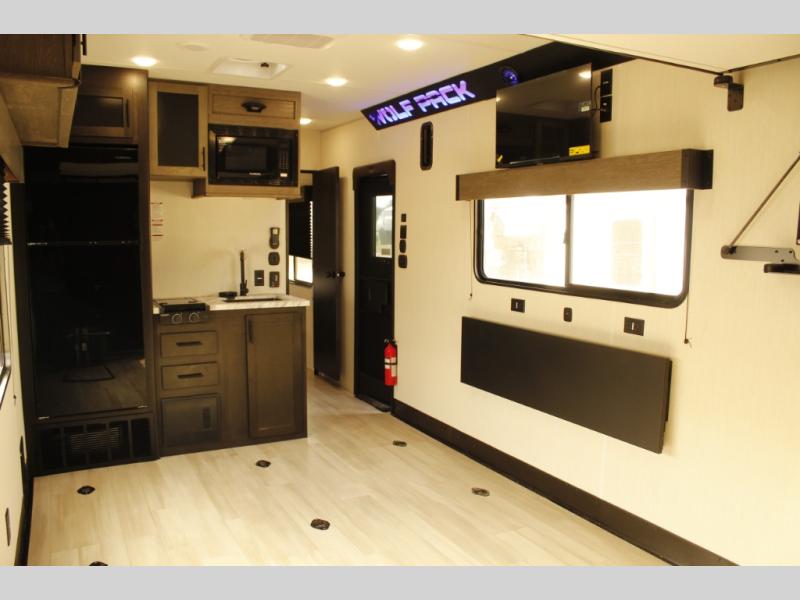 With any Cherokee Wolf Pack toy hauler by Forest River, you will enjoy never-ending adventures. You'll appreciate the 8' 6" wide body design so you can bring along toys and gear, and there is 4-camera prep with a rear camera if you want the option to make parking easier than ever. There are real wood cabinet doors and drawers inside and LED lights to keep your space well lit. These toy haulers are built with tongue and groove plywood main floors and a forced air heated underbelly and enclosed holding tanks that will help you extend your camping season.