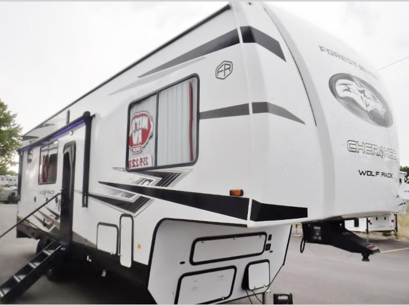 With any Cherokee Wolf Pack toy hauler by Forest River, you will enjoy never-ending adventures. You'll appreciate the 8' 6" wide body design so you can bring along toys and gear, and there is 4-camera prep with a rear camera if you want the option to make parking easier than ever. There is real wood cabinet doors and drawers inside and LED lights to keep your space well lit. These toy haulers are built with tongue and groove plywood main floors and a forced air heated underbelly and enclosed holding tanks that will help you extend your camping season.