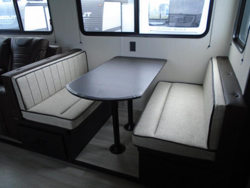 With any Cherokee Wolf Pack toy hauler by Forest River, you will enjoy never-ending adventures. You'll appreciate the 8' 6" wide body design so you can bring along toys and gear, and there is 4-camera prep with a rear camera if you want the option to make parking easier than ever. There is real wood cabinet doors and drawers inside and LED lights to keep your space well lit. These toy haulers are built with tongue and groove plywood main floors and a forced air heated underbelly and enclosed holding tanks that will help you extend your camping season.