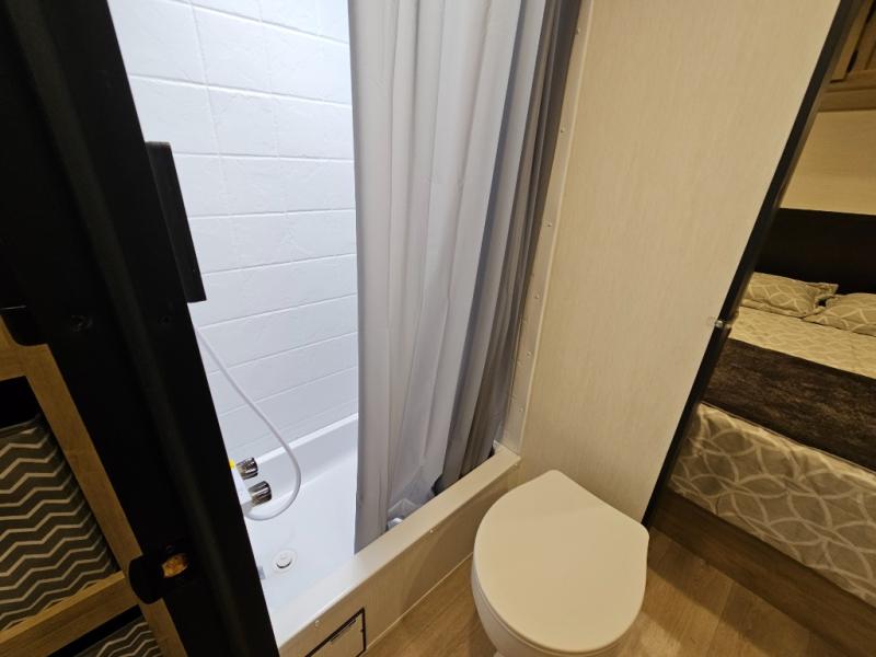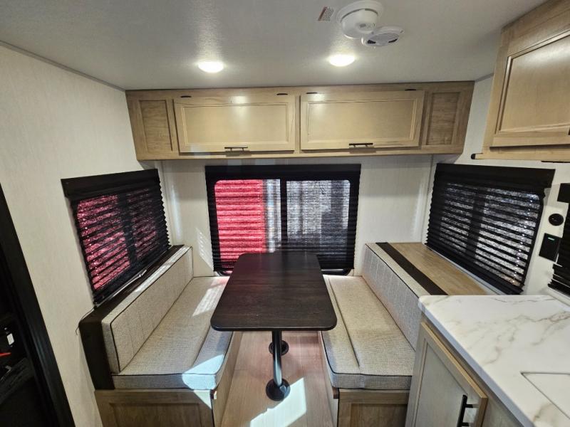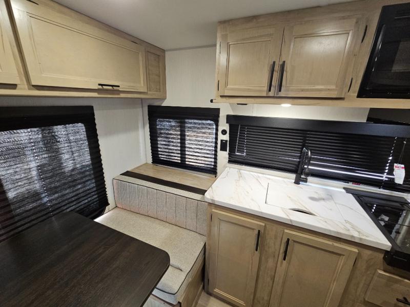 Convenient camping is found with this lightweight travel trailer! Once you arrive at your destination, put out the 15' power awning, then make lunch on the exterior mini kitchen. Inside, you can dine at the booth dinette, freshen up in the tub/shower, and sleep soundly on the queen bed in the master bedroom. And you're sure to find plenty of storage spaces both inside and outside.