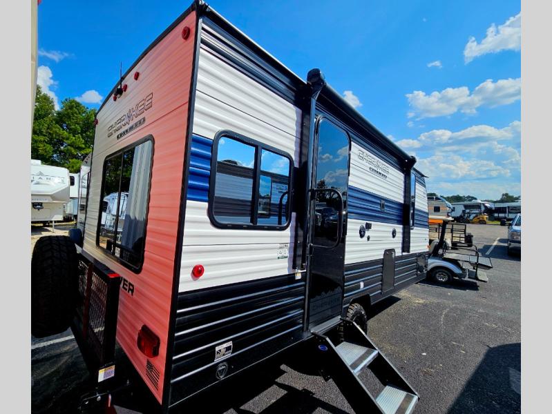Each one of these Forest River Cherokee Wolf Pup travel trailers and toy hauler are lightweight and easy to tow! They are fully self-contained with ample tank capacities, an abundance of storage space, and filled with at home amenities. The full bath and kitchen amenities will make life at the campground easier than ever, and the outdoor patio awning will provide an inviting outdoor space!