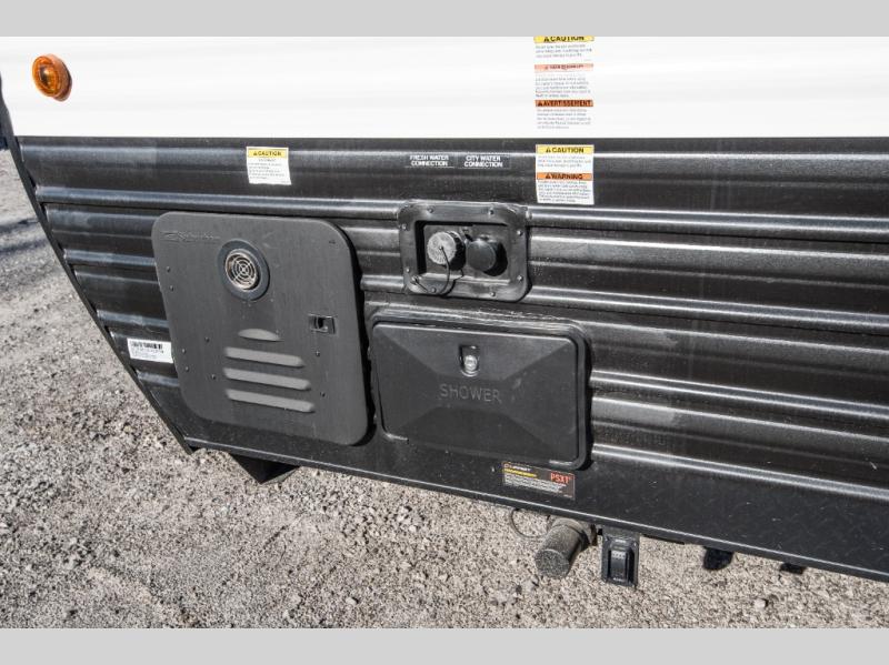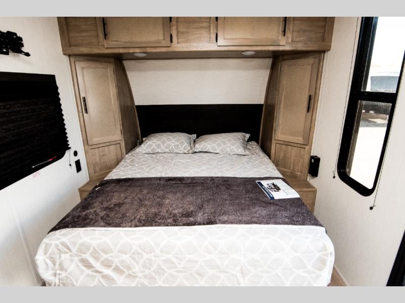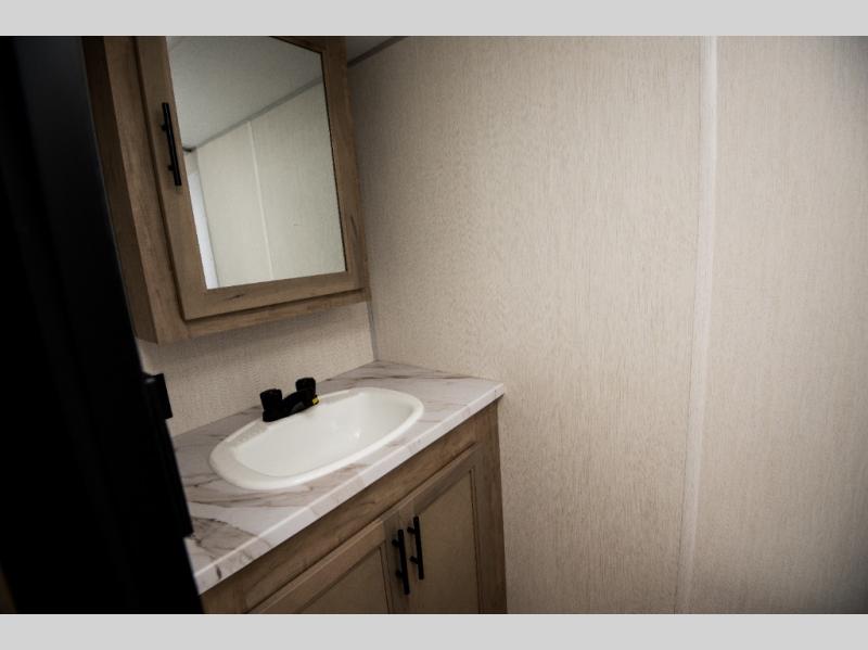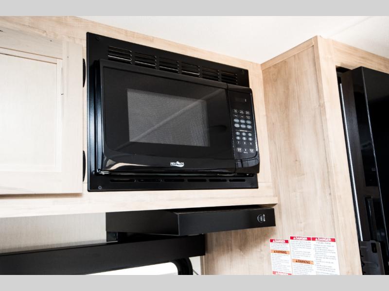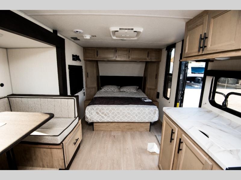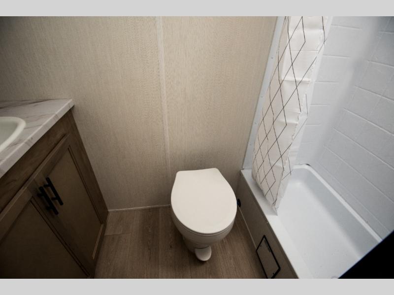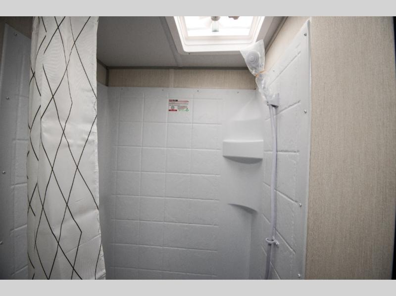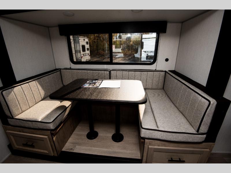 Every camping trip in this travel trailer is sure to be memorable. You will have a front queen bed to sleep on, while your guests take the U-shaped dinette when it's not being used to dine at. The kitchen provides a microwave oven, round single bowl sink, a range for cooking, and a refrigerator to keep all of your perishables fresh. The rear bath features a tub/shower, toilet, and vanity with sink, plus a medicine cabinet to keep this space tidy.