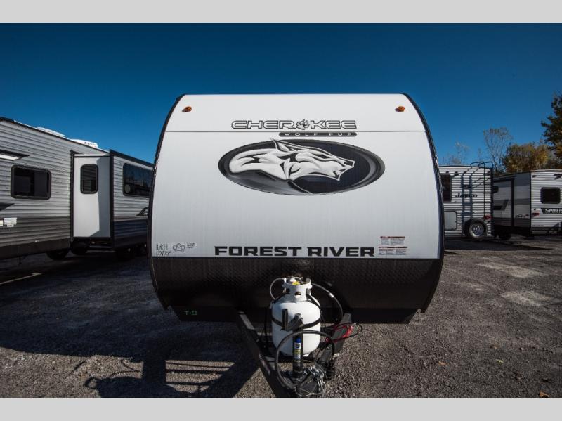 Each one of these Forest River Cherokee Wolf Pup travel trailers and toy hauler are lightweight and easy to tow! They are fully self-contained with ample tank capacities, an abundance of storage space, and filled with at home amenities. The full bath and kitchen amenities will make life at the campground easier than ever, and the outdoor patio awning will provide an inviting outdoor space!