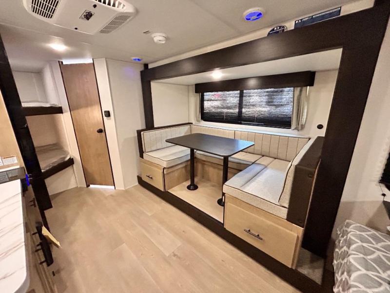 Double Size Bunk Beds / U-Shaped Dinette / Front Queen Bed / Pack & Play Door / Power Stabilizer Jacks / Solar System !!