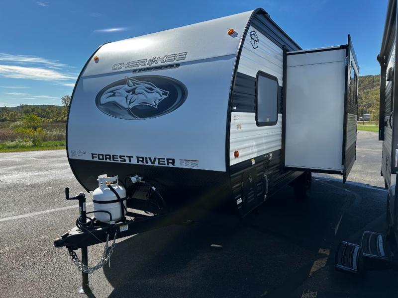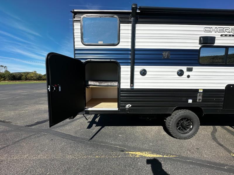 Each one of these Forest River Cherokee Wolf Pup travel trailers and toy hauler are lightweight and easy to tow! They are fully self-contained with ample tank capacities, an abundance of storage space, and filled with at home amenities. The full bath and kitchen amenities will make life at the campground easier than ever, and the outdoor patio awning will provide an inviting outdoor space!