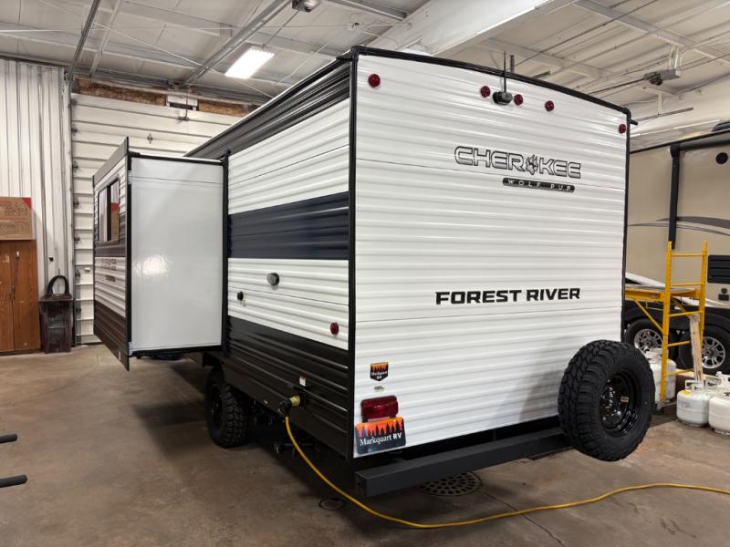 Each one of these Forest River Cherokee Wolf Pup travel trailers and toy hauler are lightweight and easy to tow! They are fully self-contained with ample tank capacities, an abundance of storage space, and filled with at home amenities. The full bath and kitchen amenities will make life at the campground easier than ever, and the outdoor patio awning will provide an inviting outdoor space!