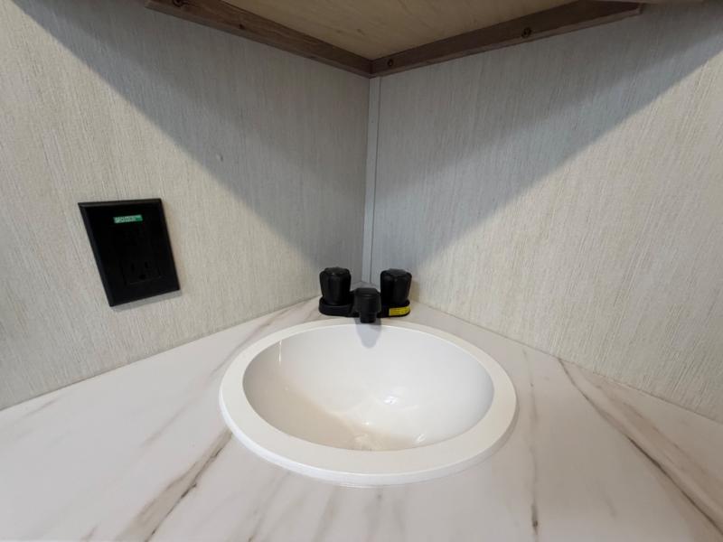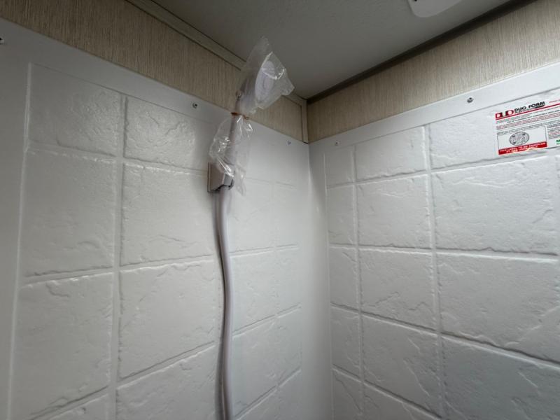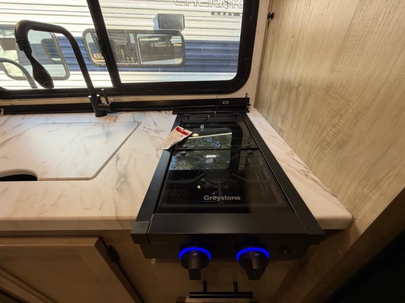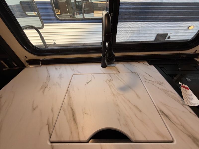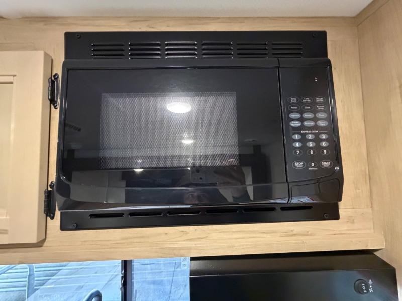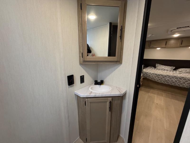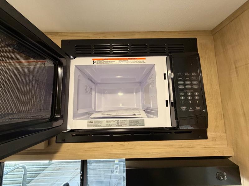 This family travel trailer is ready to head to the campground whenever you are! The kiddos can sleep on the set of double-size bed bunks, and you can sleep on the front queen bed, plus the U-shaped dinette slide can also transform into an extra sleeping space when you aren't using it to enjoy a meal prepared with the cooktop. You can also prepare your delicious meals at the outside mini kitchen and stay protected by the power awning. The exterior not only has outside storage and an outside TV mount but also features an outside storage plus door for access to the storage space underneath the bottom bunk bed. The rear corner bath allows everyone to stay clean and refreshed while you camp.