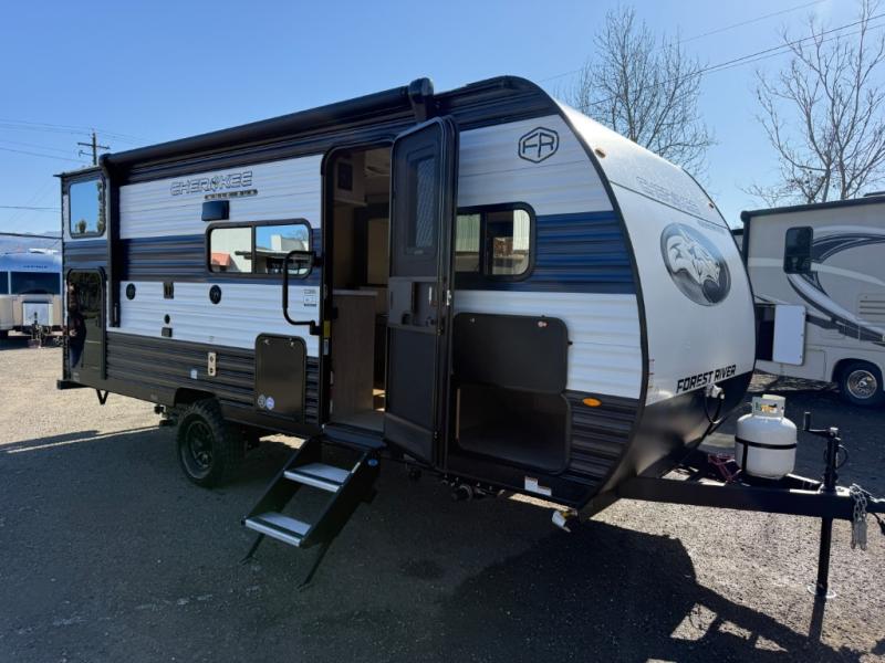 Each one of these Forest River Cherokee Wolf Pup travel trailers and toy hauler are lightweight and easy to tow! They are fully self-contained with ample tank capacities, an abundance of storage space, and filled with at home amenities. The full bath and kitchen amenities will make life at the campground easier than ever, and the outdoor patio awning will provide an inviting outdoor space!