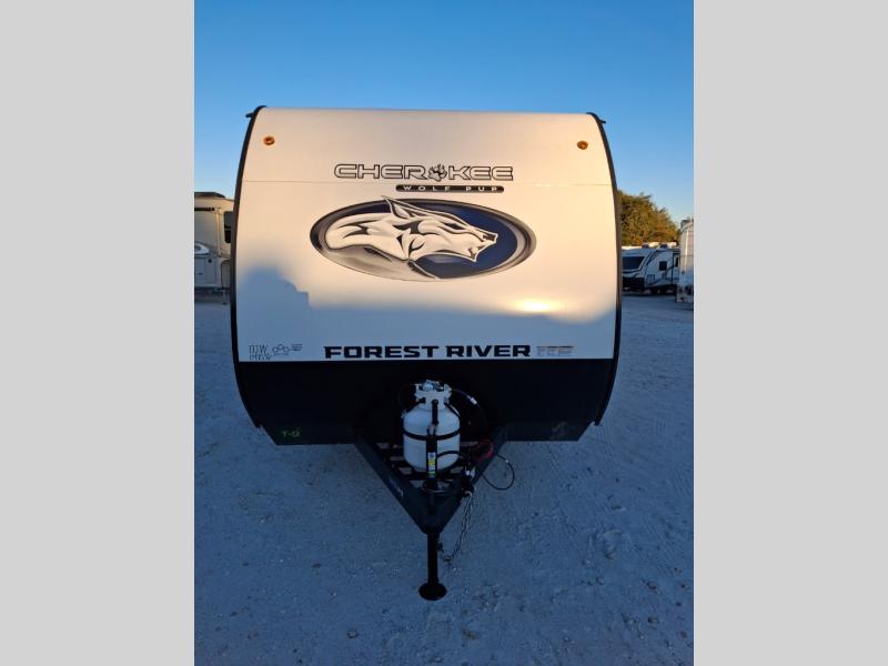 Each one of these Forest River Cherokee Wolf Pup travel trailers and toy hauler are lightweight and easy to tow! They are fully self-contained with ample tank capacities, an abundance of storage space, and filled with at home amenities. The full bath and kitchen amenities will make life at the campground easier than ever, and the outdoor patio awning will provide an inviting outdoor space!