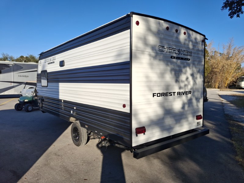 Each one of these Forest River Cherokee Wolf Pup travel trailers and toy hauler are lightweight and easy to tow! They are fully self-contained with ample tank capacities, an abundance of storage space, and filled with at home amenities. The full bath and kitchen amenities will make life at the campground easier than ever, and the outdoor patio awning will provide an inviting outdoor space!