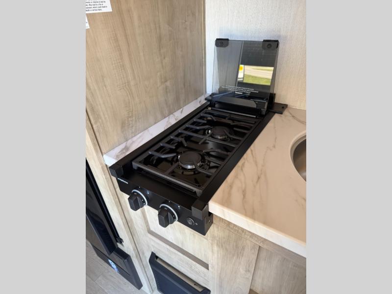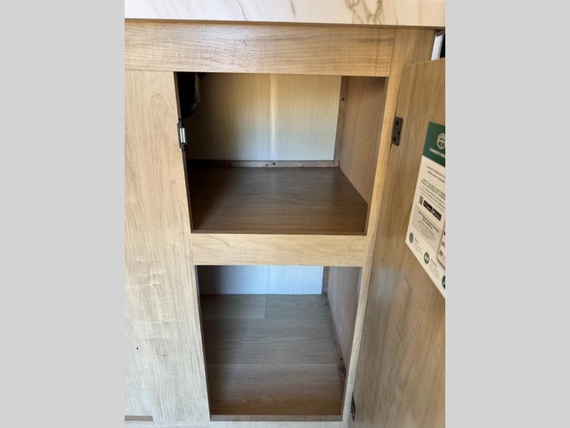 Create amazing memories in this stunning travel trailer! It is perfect for at least six people, thanks to its multiple sleeping spaces. The spacious double-sized bunk beds are ideal for kids or guests, while the plush queen-sized bed provides a restful retreat for adults. The full bathroom is equipped with everything you need for a comfortable stay, and the kitchen features a refrigerator and microwave for you to go wild in the kitchen. You can also gather around the dinette for meals and snacks, or relax in the evenings under the protection of the exterior awning. In addition, ample overhead cabinets provide storage for cookware, dishes, and essentials, keeping your trailer tidy and organized.