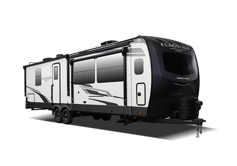 Each one of these Forest River Flagstaff Classic fifth wheels or travel trailers will be your home on wheels! Their quality craftsmanship and attention to detail shines through the enclosed underbelly, the fully laminated walkable roof, and six-sided full-aluminum frame. Towing your unit will be easy with the Goodyear Endurance tires plus RoadTech tire pressure monitoring. Additional exterior features include a 200W solar panel, slam baggage doors, a Key-Alike lock system, and double 30 lb. LP tanks to name a few conveniences. Head inside to find a residential style gas range, solid surface kitchen and bath countertops, soft close hidden cabinet hinges, and more comforts!